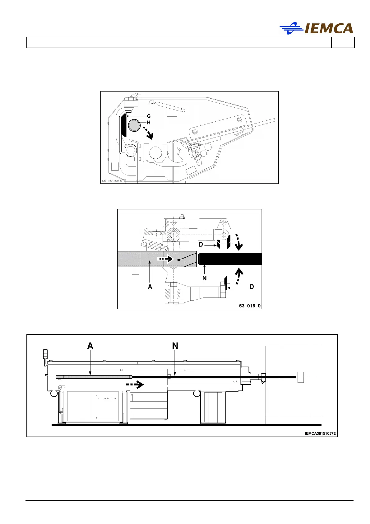 The clamps (D) close, the bar-pusher (A) moves forwards; the bar (N) is inserted into the bar-