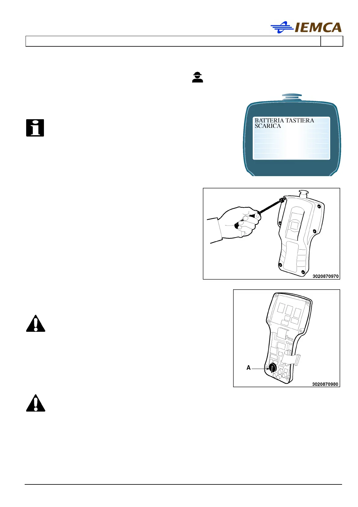 • Remove the battery A from its housing.
