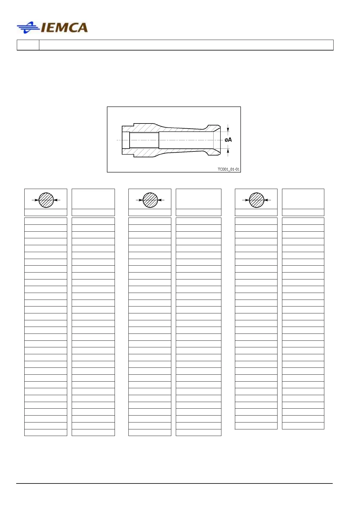 Before selecting the steel collet, define the internal diameter øA by referring to the table below.