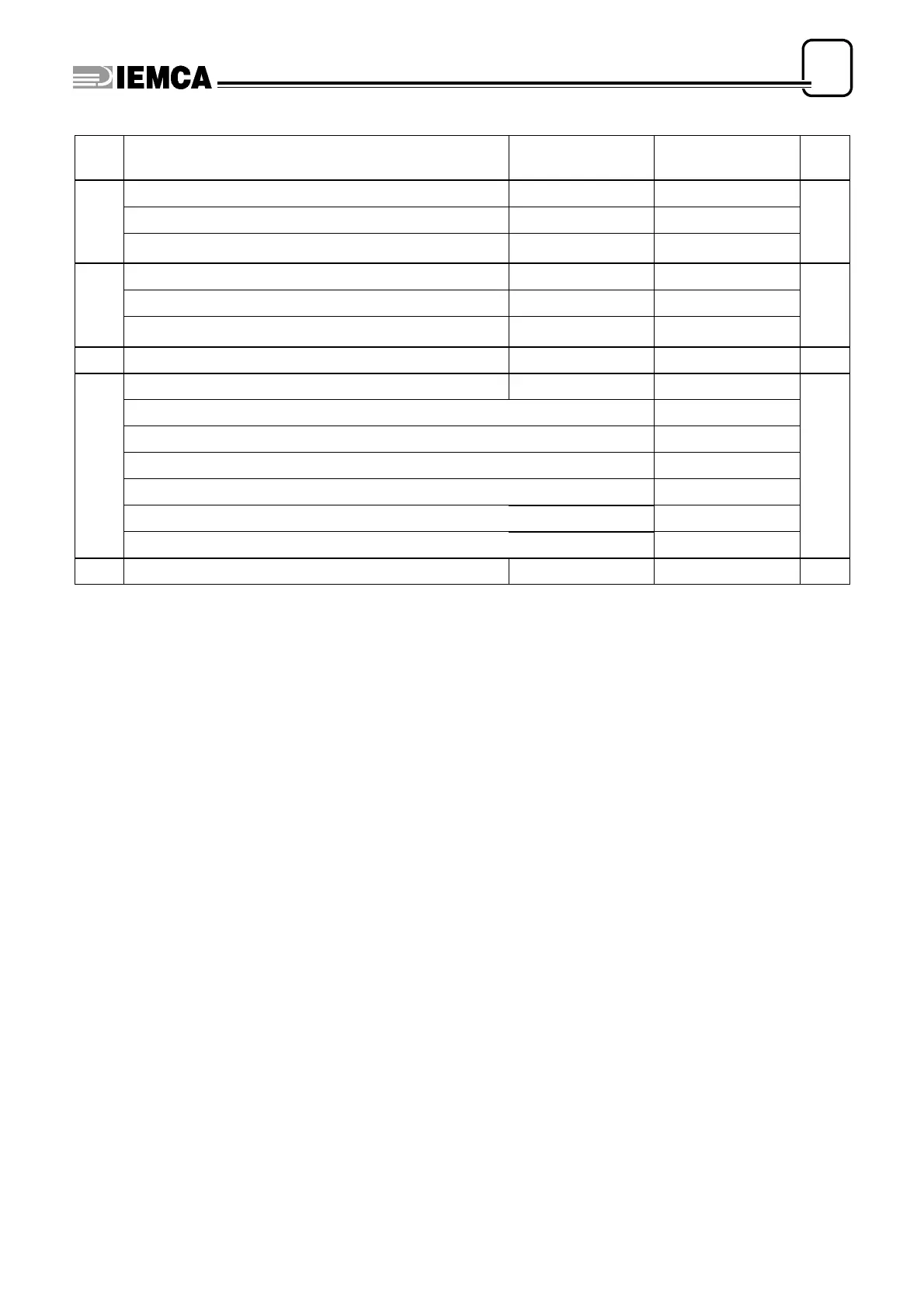 Description of parameters