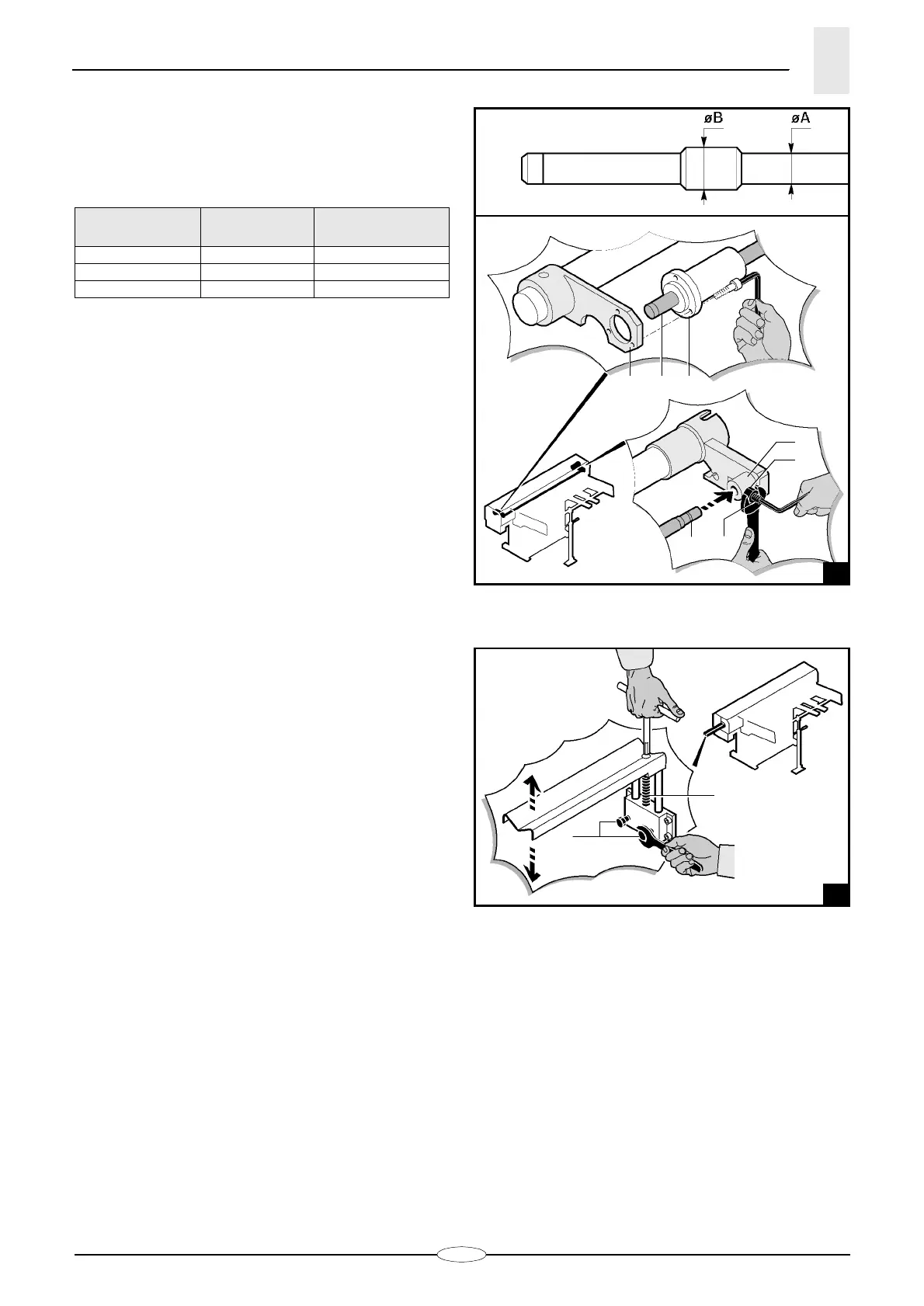 for the bar diameter (see table below).