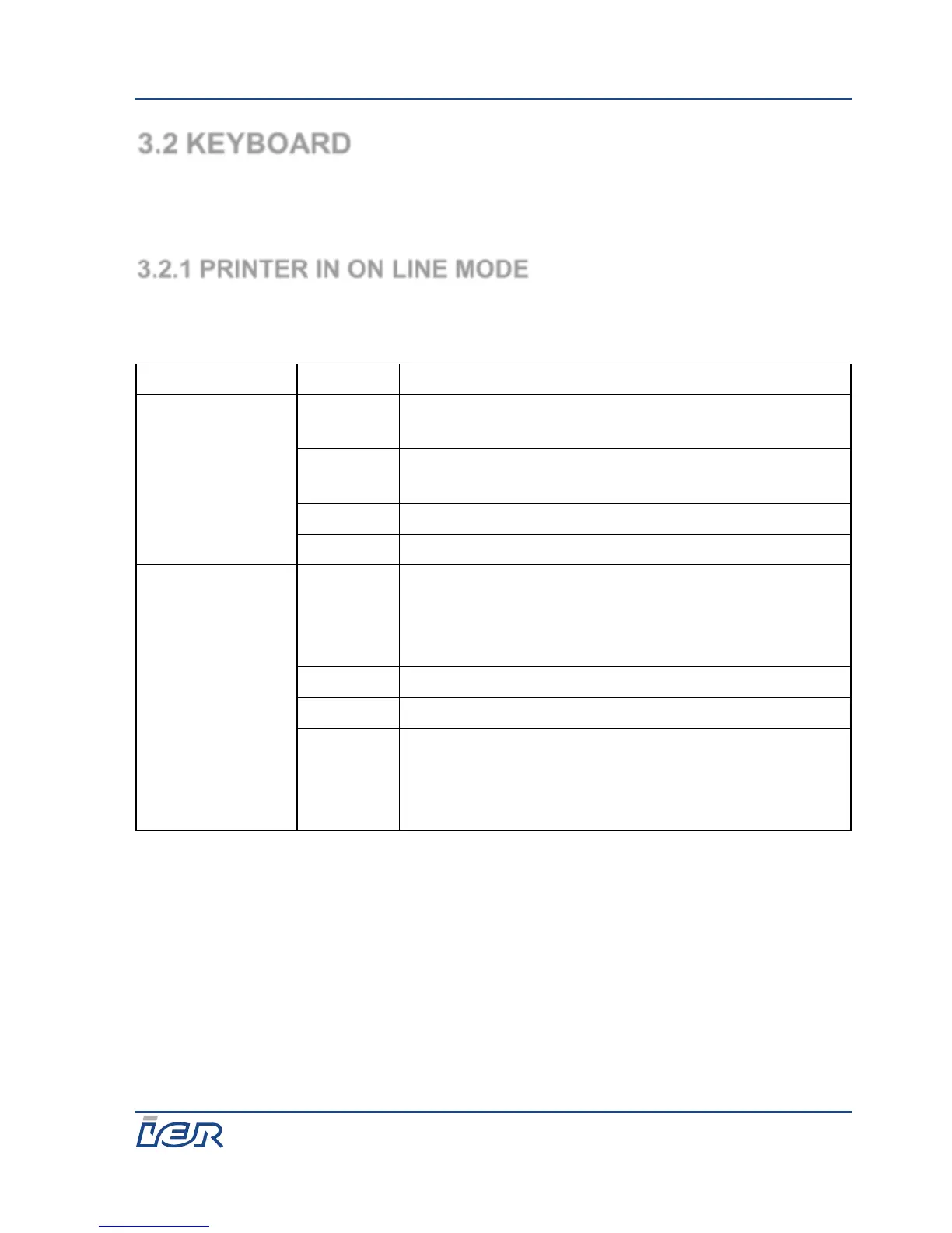 3.2.1 PRINTER IN ON LINE MODE