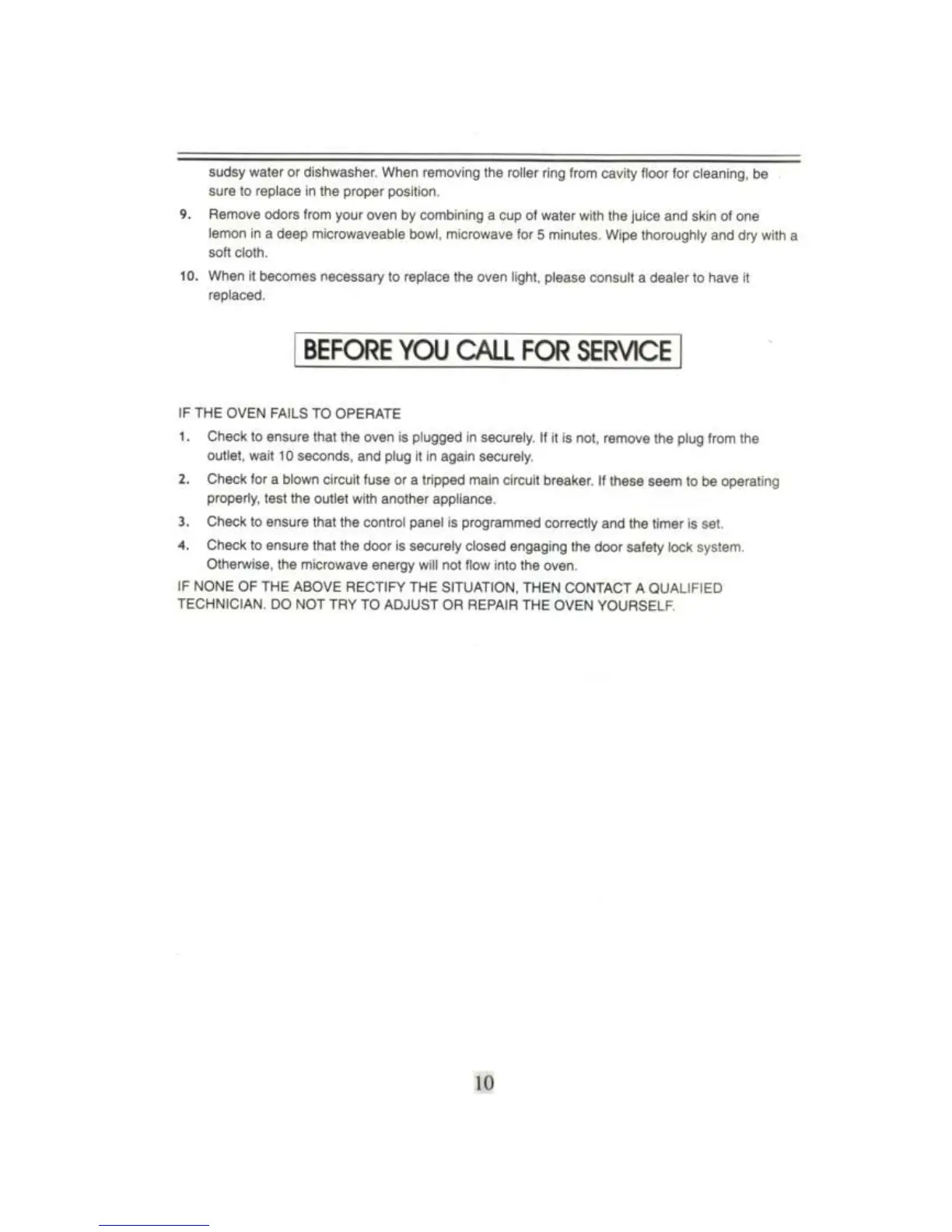 IFB 20PG1S - Troubleshooting and Service; Oven Fails to Operate; Contact Qualified Technician