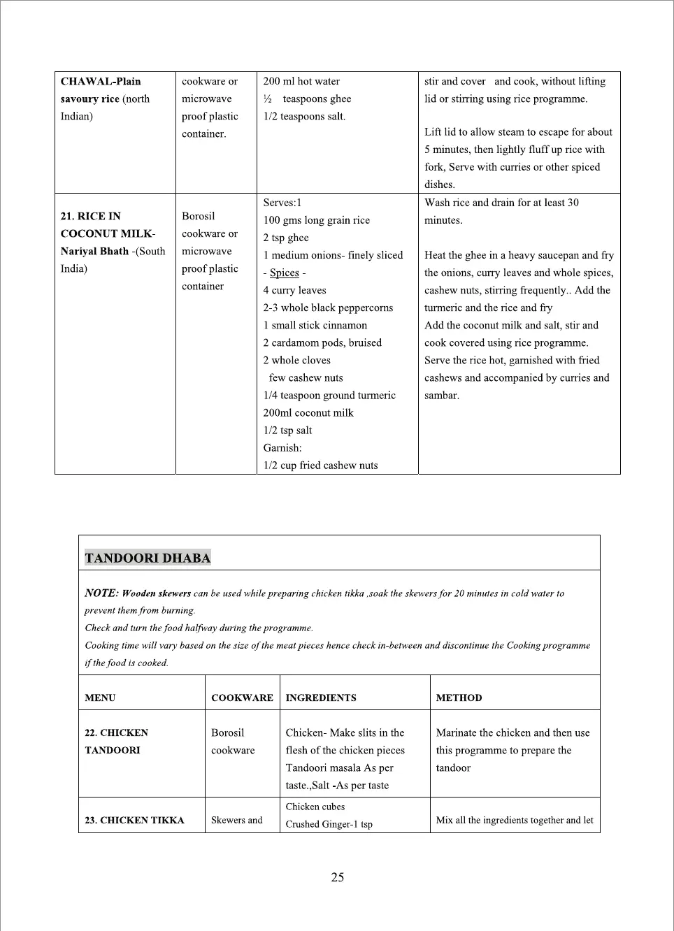 IFB 25SC4 - Tandoori Dhaba Auto Cook Recipes