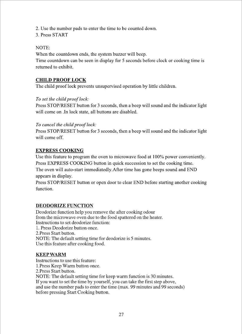 IFB 25SC4 - Child Proof Lock; Express Cooking; Deodorize Function; Keep Warm Function