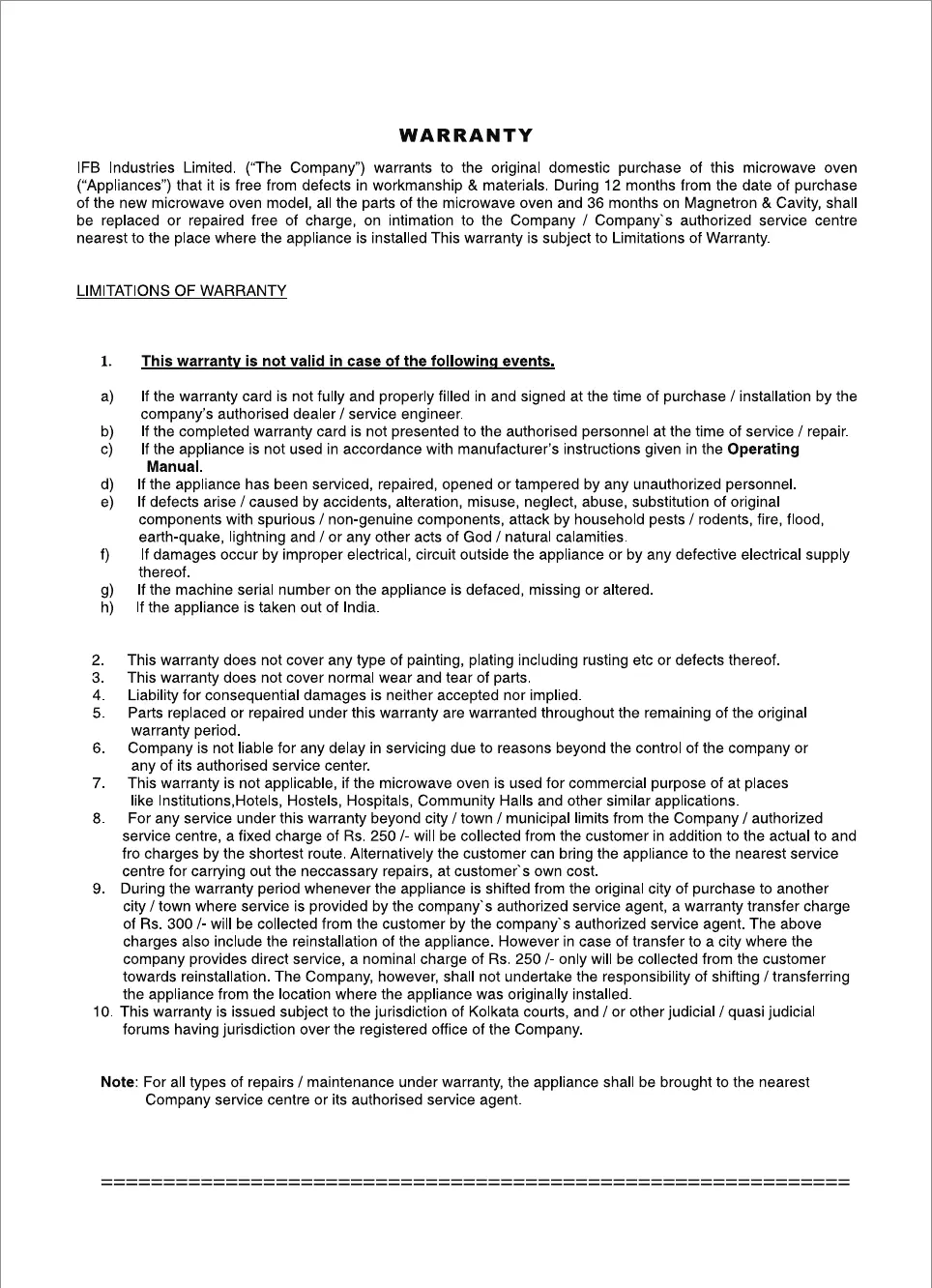 IFB 25SC4 - Warranty Information; Warranty Limitations