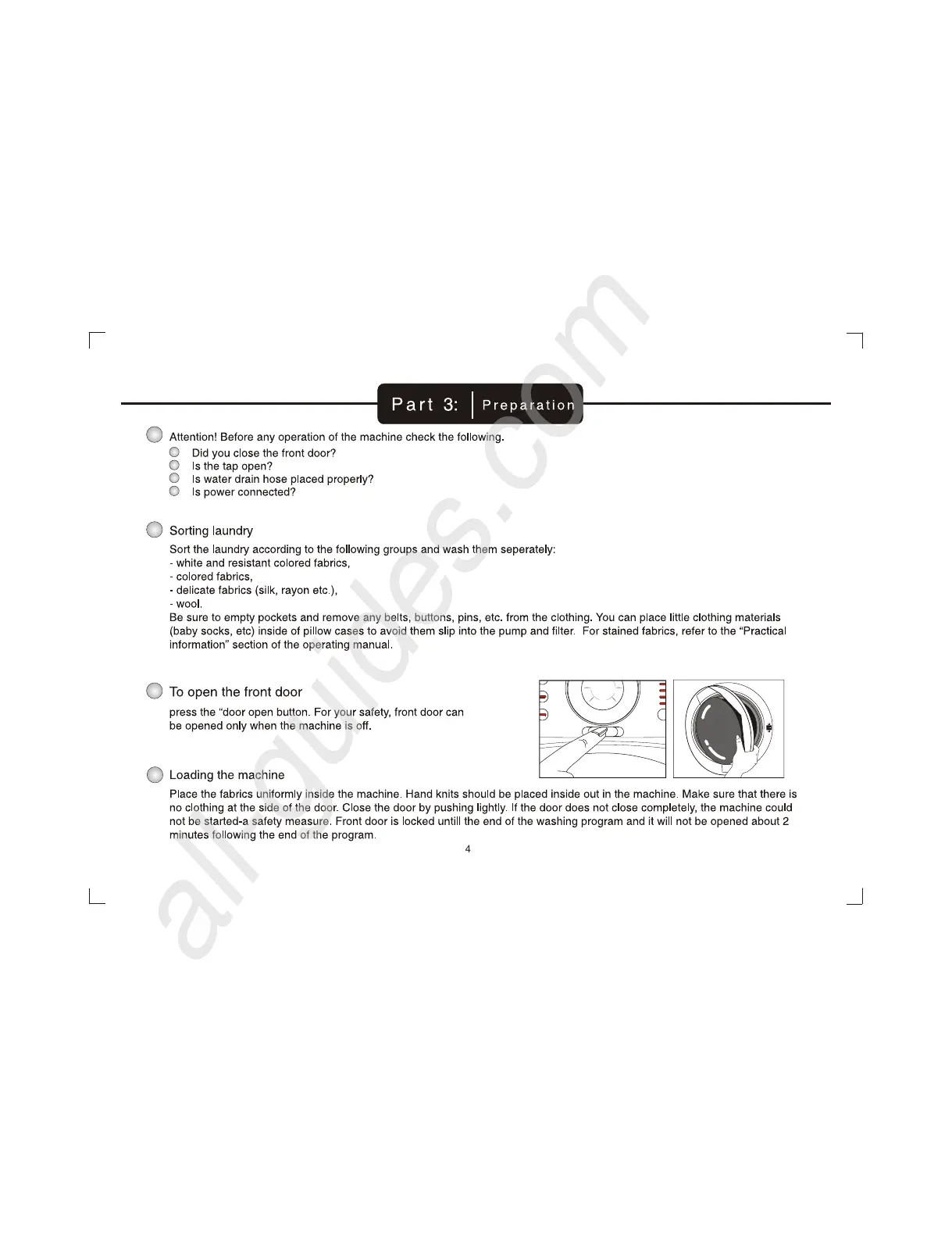 IFB Digital - Water Inlet; Water Outlet; Electrical Connection