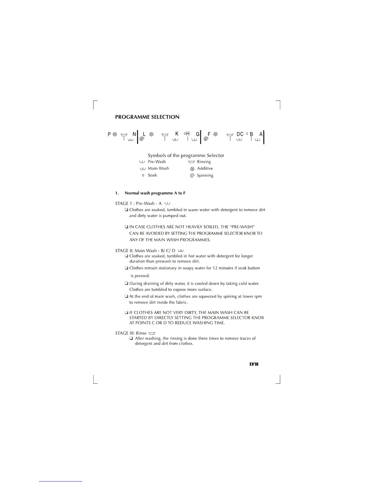 IFB Executive Elite - PROGRAMME SELECTION GUIDE; Programme Symbols and Normal Wash