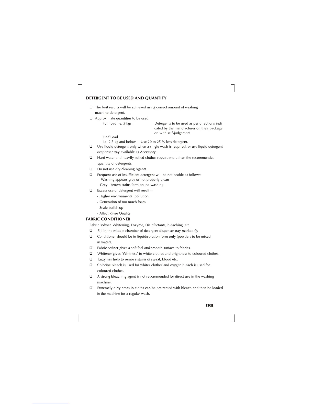 IFB Executive Elite - Detergent and Fabric Conditioner Usage