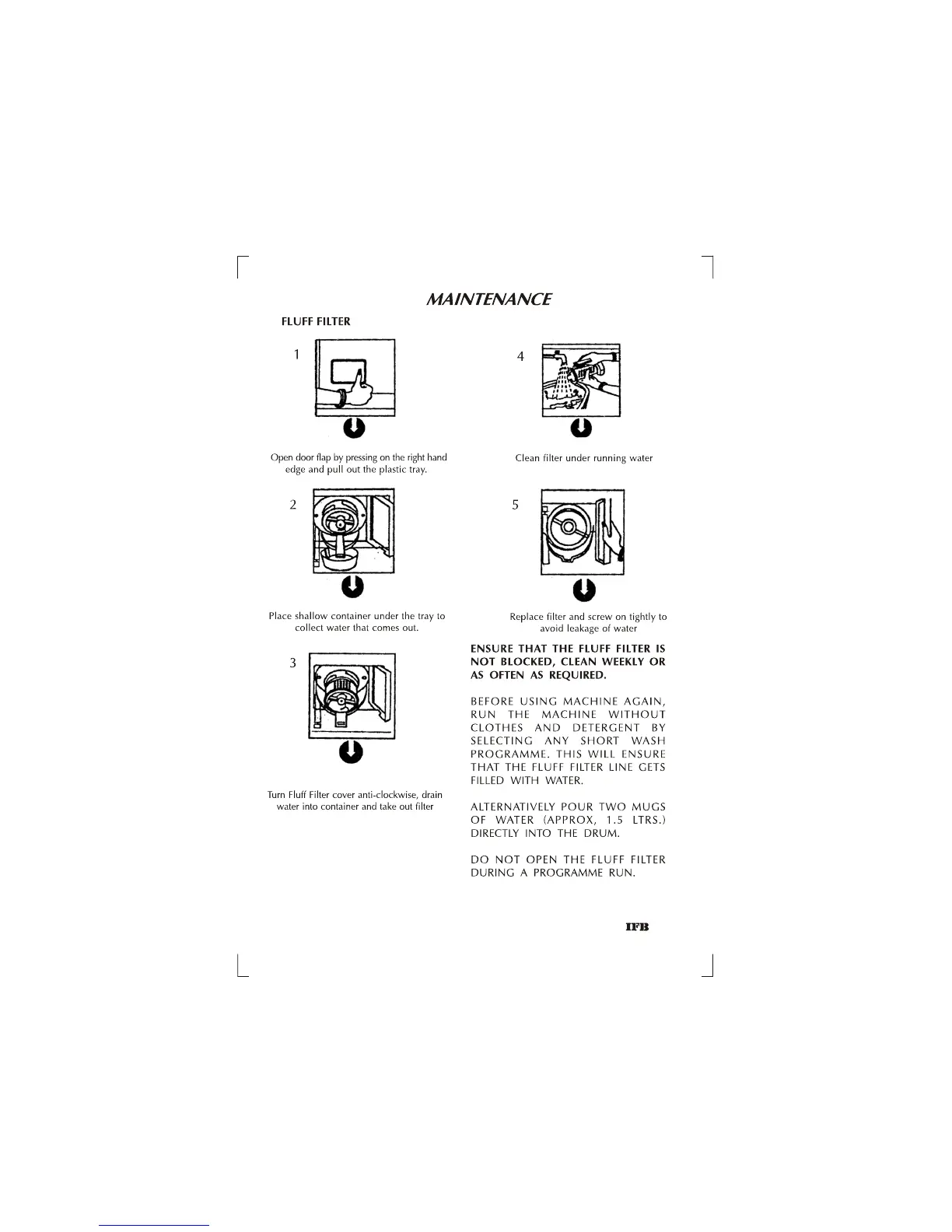 IFB Executive Elite - MAINTENANCE AND CARE; Fluff Filter Cleaning Procedure