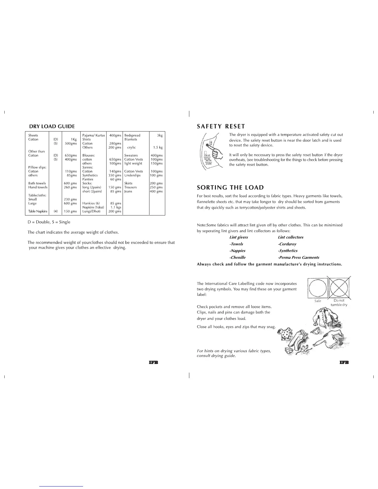 IFB MAXIDRY 550 - Dry Load Guide; Safety Reset Procedure