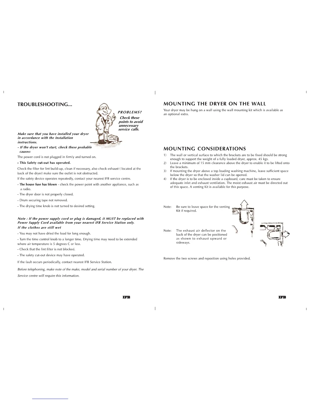 IFB MAXIDRY 550 - Troubleshooting; Troubleshooting Common Issues; Mounting the Dryer on the Wall