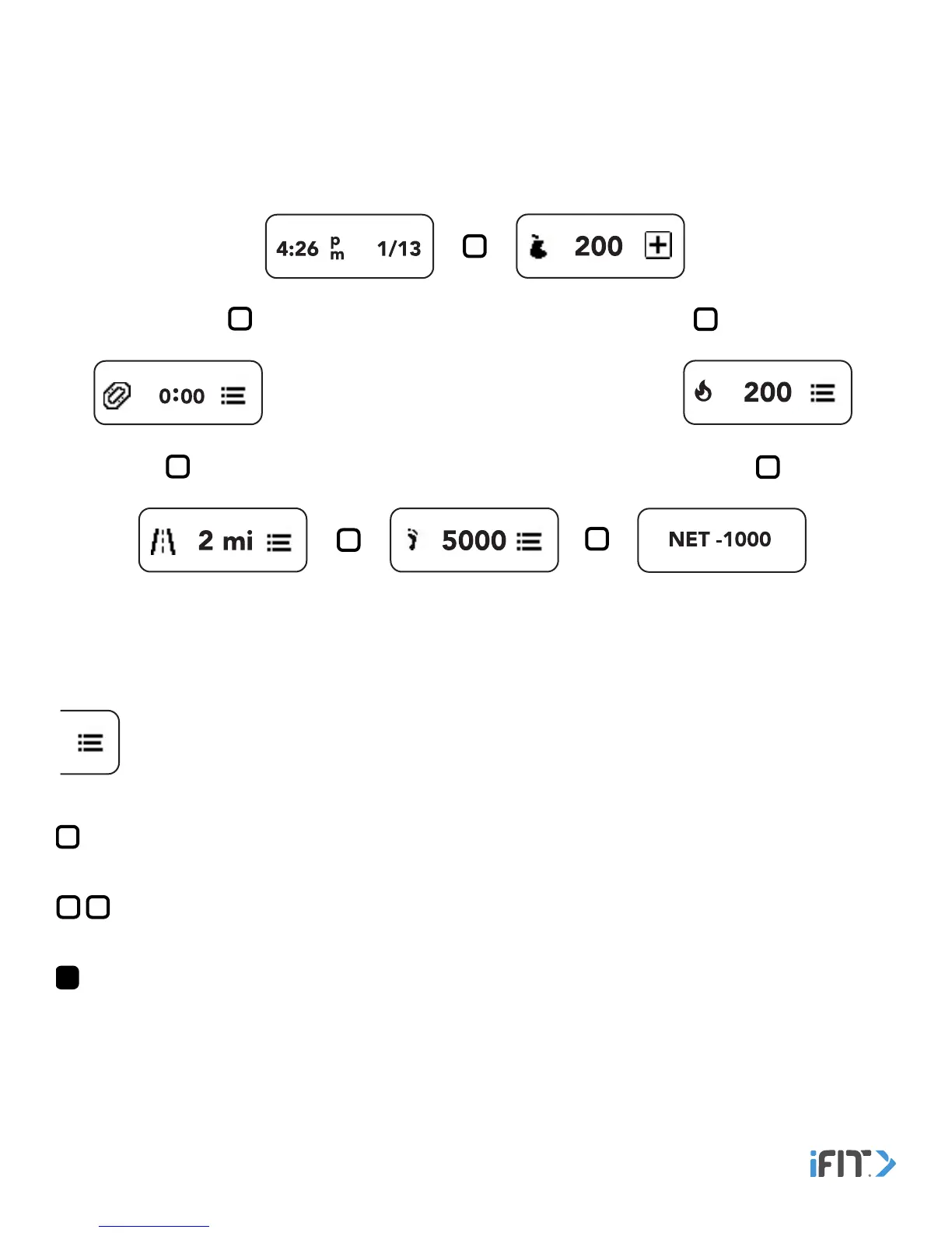 Menu icon—Double tap the button when a menu icon appears on a menu heading screen to view more infomation and