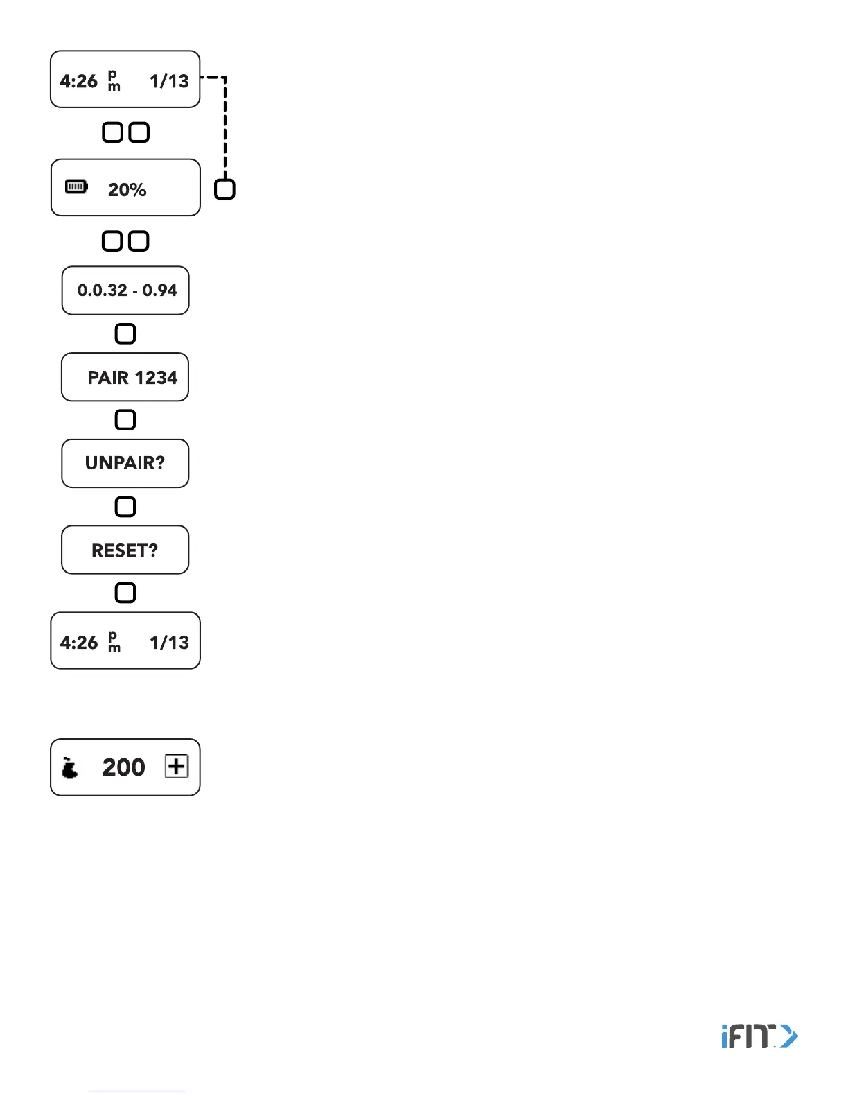 Information and Settings—Tap the button repeatedly to view the version number of the