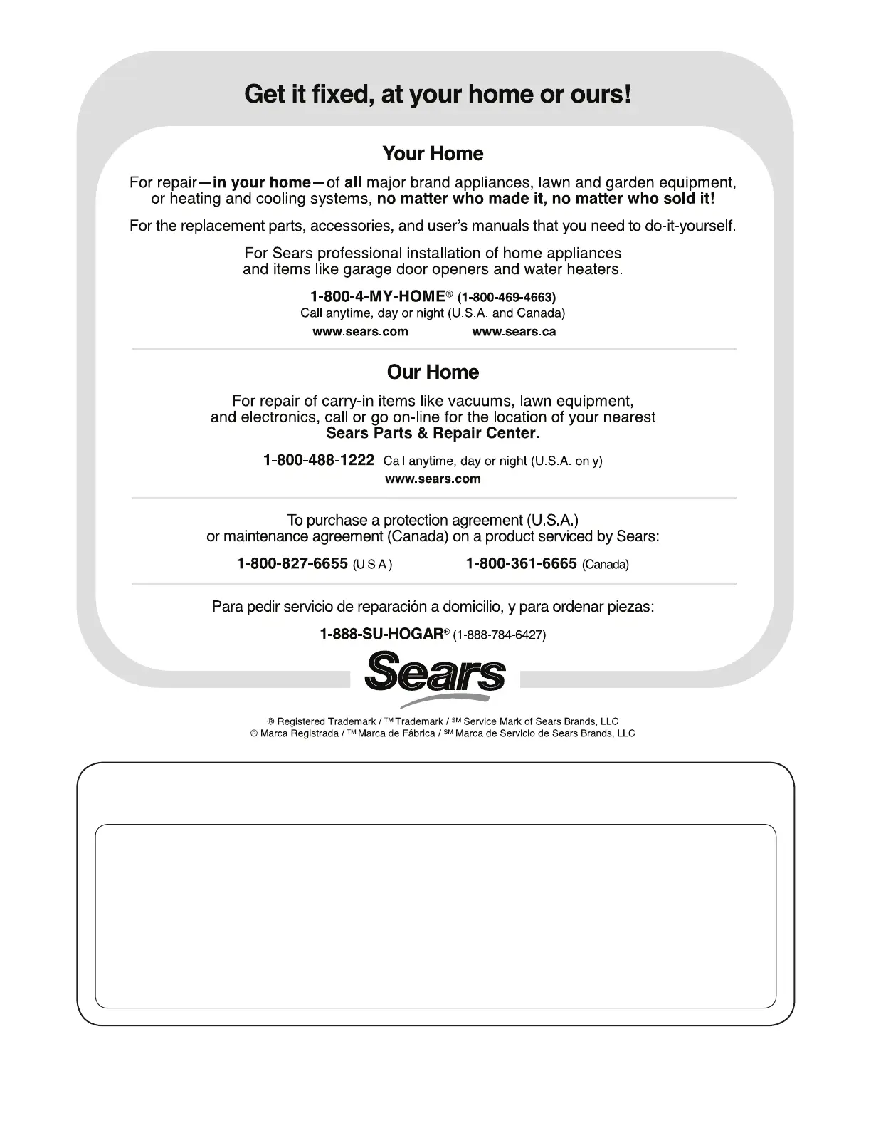 of the date of purchase, call 1-800-4-MY-HOME