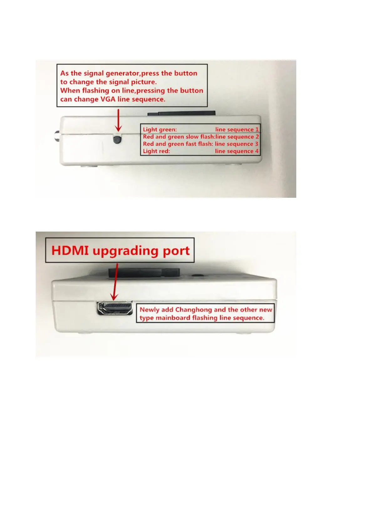 “HDMI” Digital high-definition interfacecan connect with the HMDI port of the flashing board.