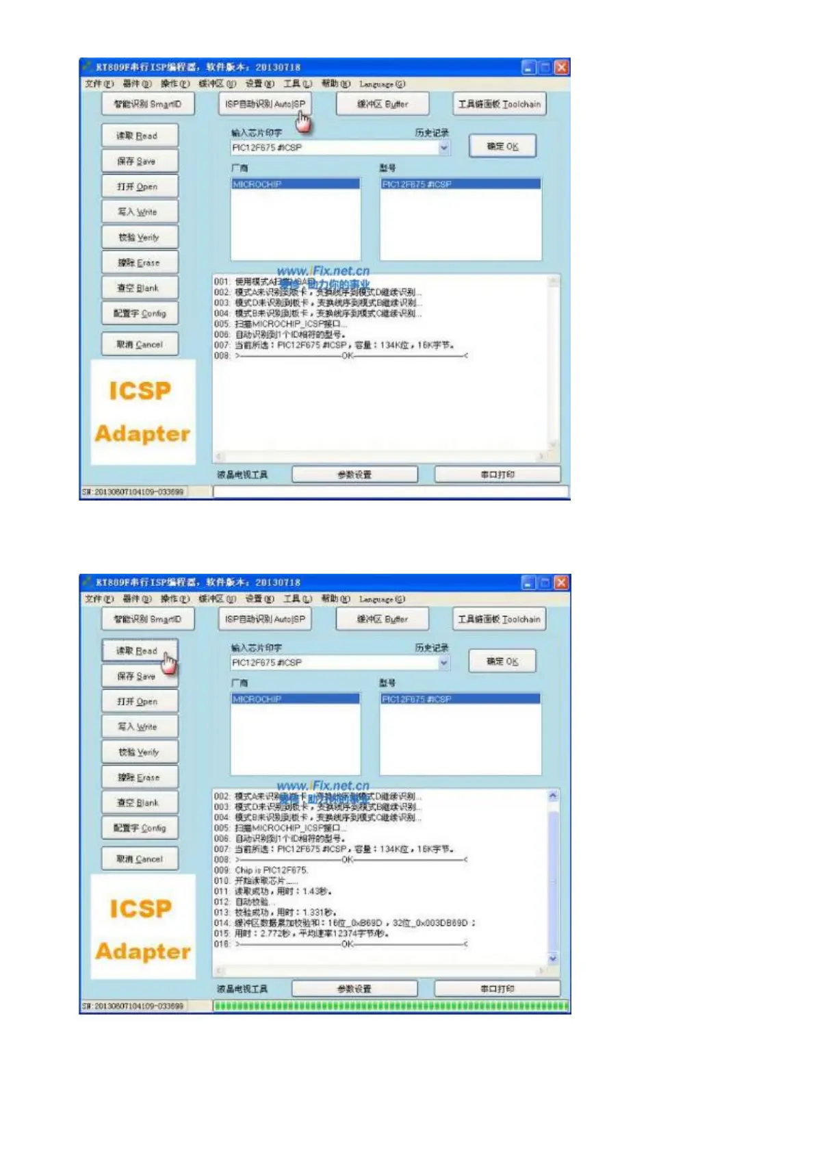 Step 2 : Click Read”,RT809F software will read and verify automatically again;