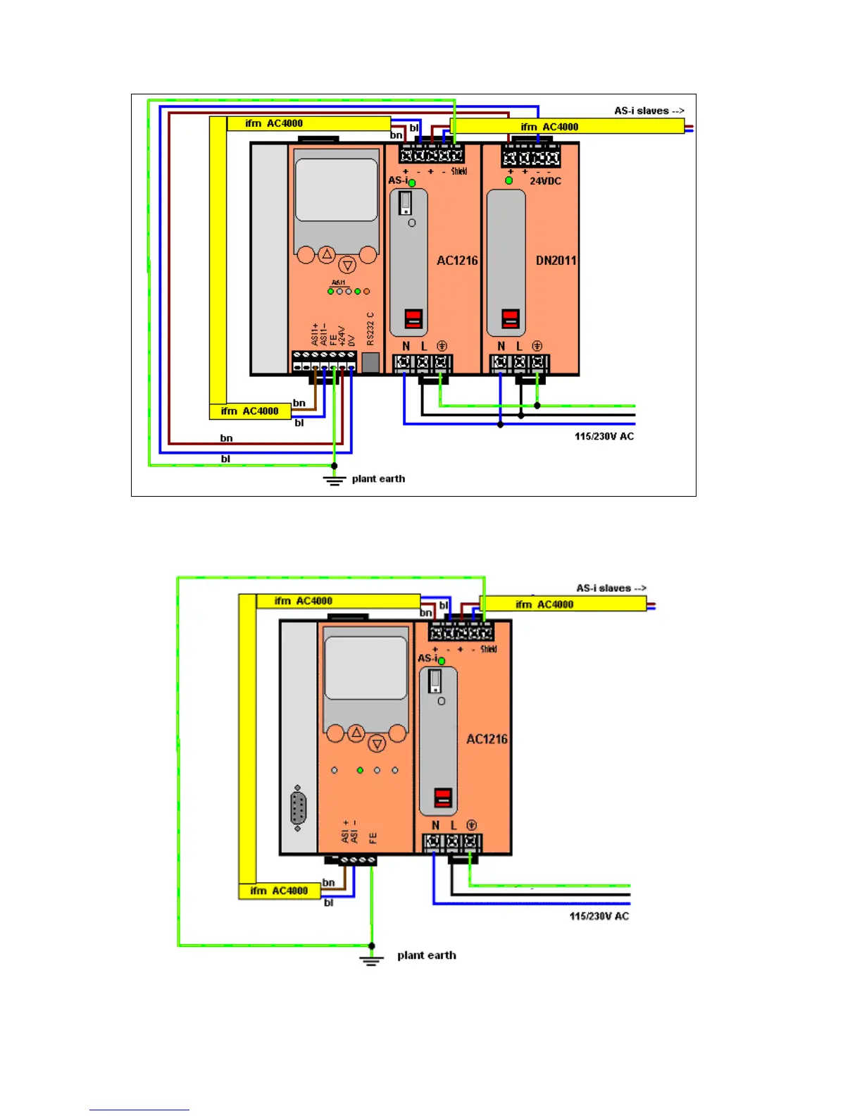 AC1325 wiring example with only one AS-i system; Adherence to codes and guidelines (for