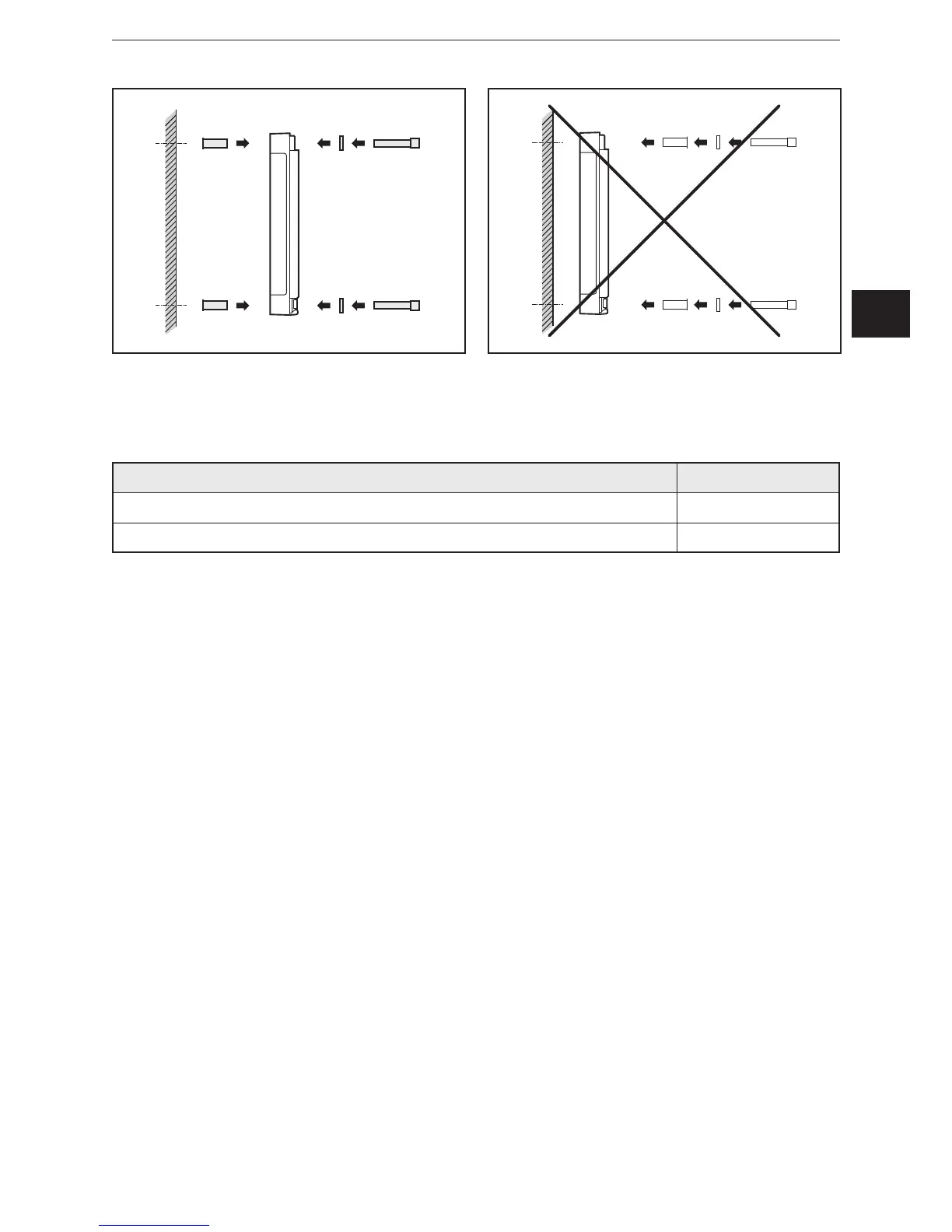 Screws to be used (examples): Standard
