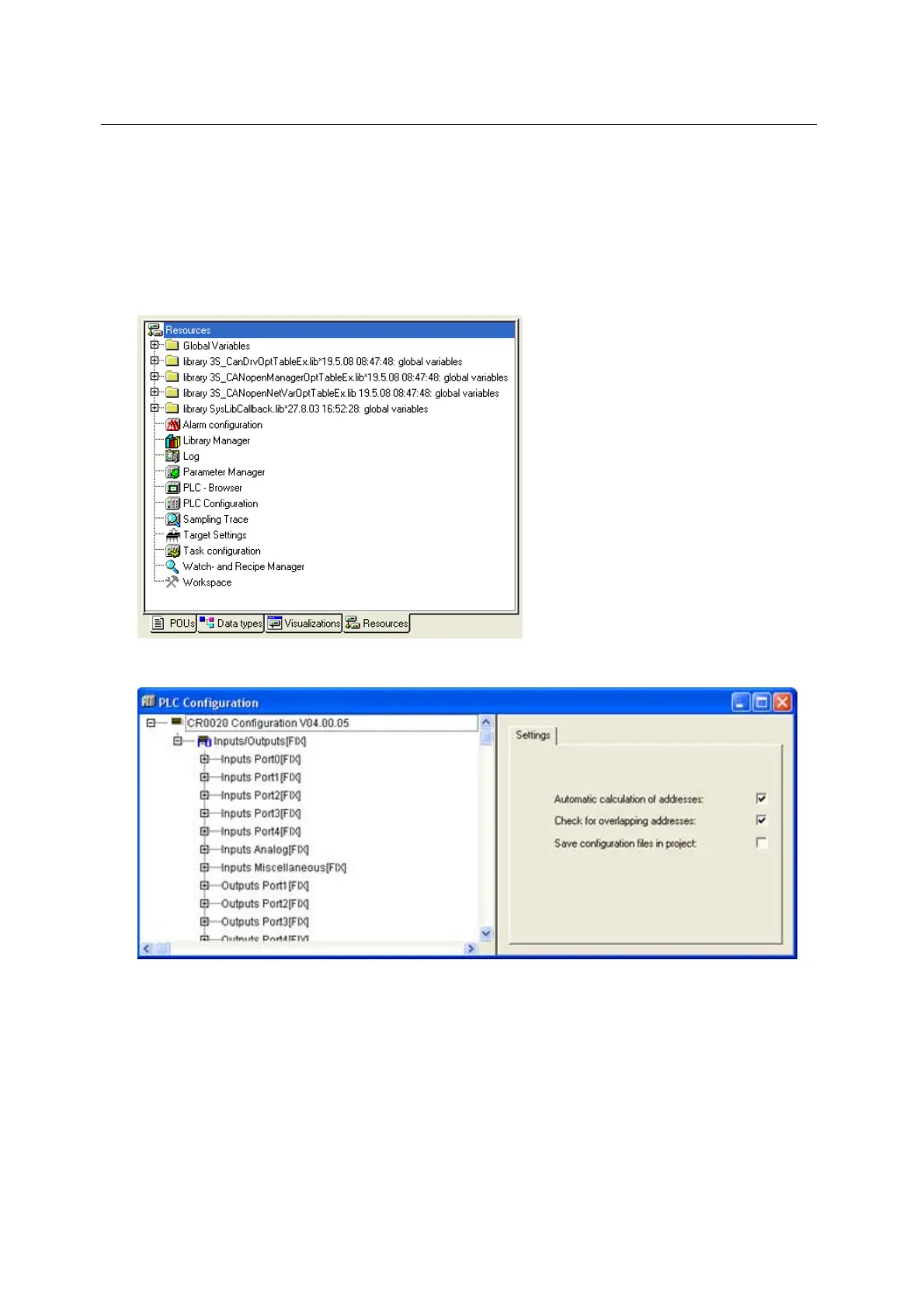 The point [PLC Configuration] is reached via the tab [Resources]. Double-click on [PLC Configuration]