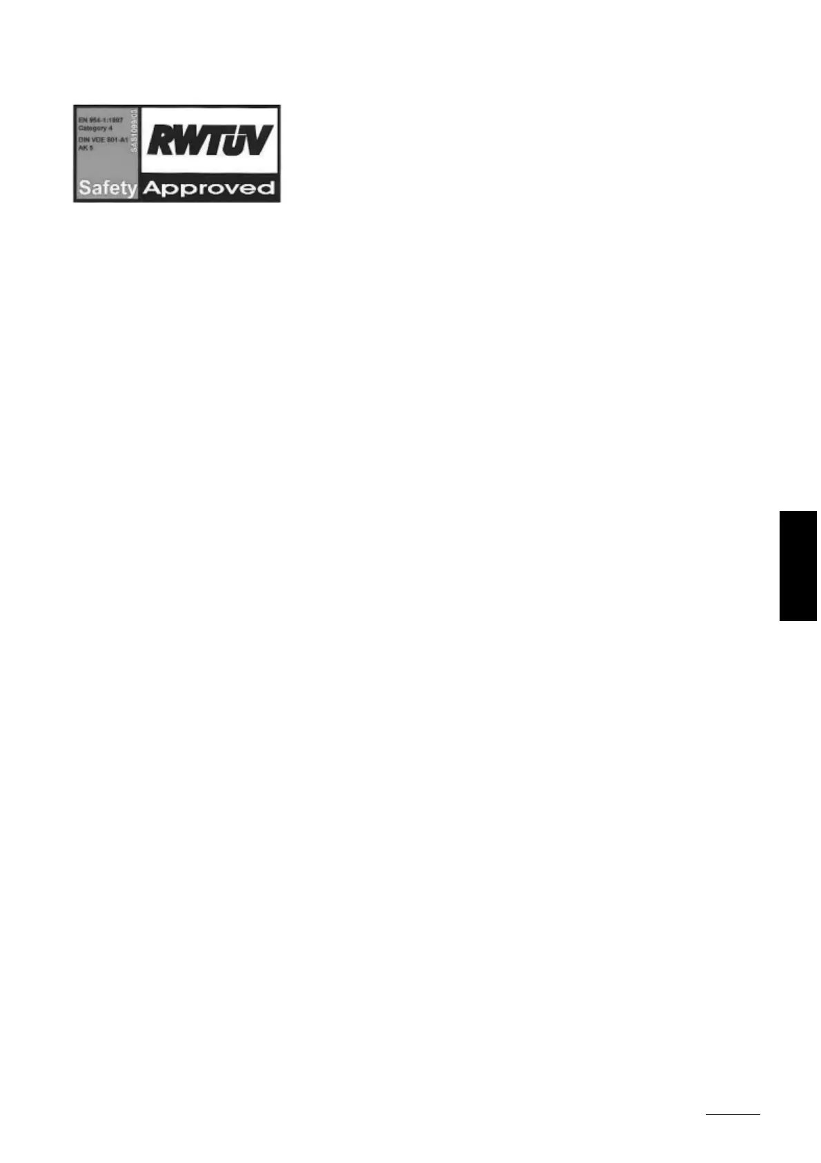 • EN 954-1 (1996) Category 4, Safety of machinery. Safety-related parts of control