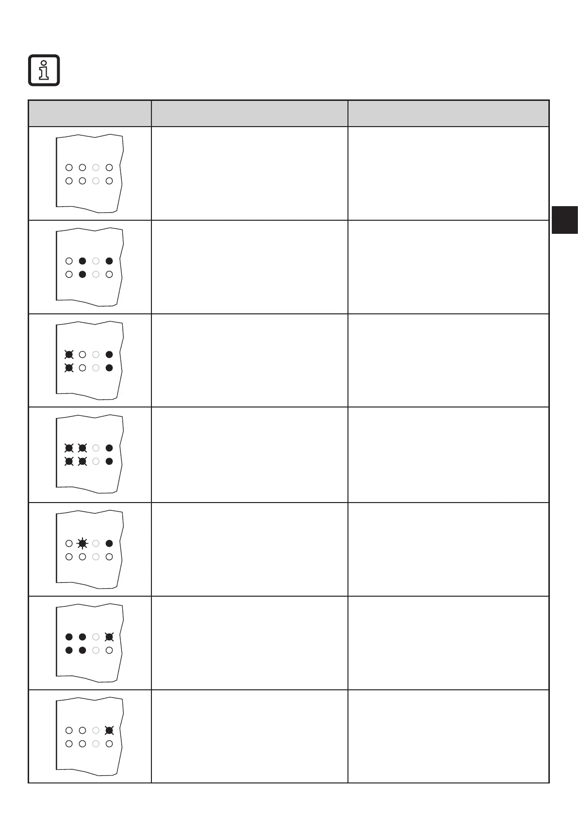 LED display Cause of the fault Troubleshooting
