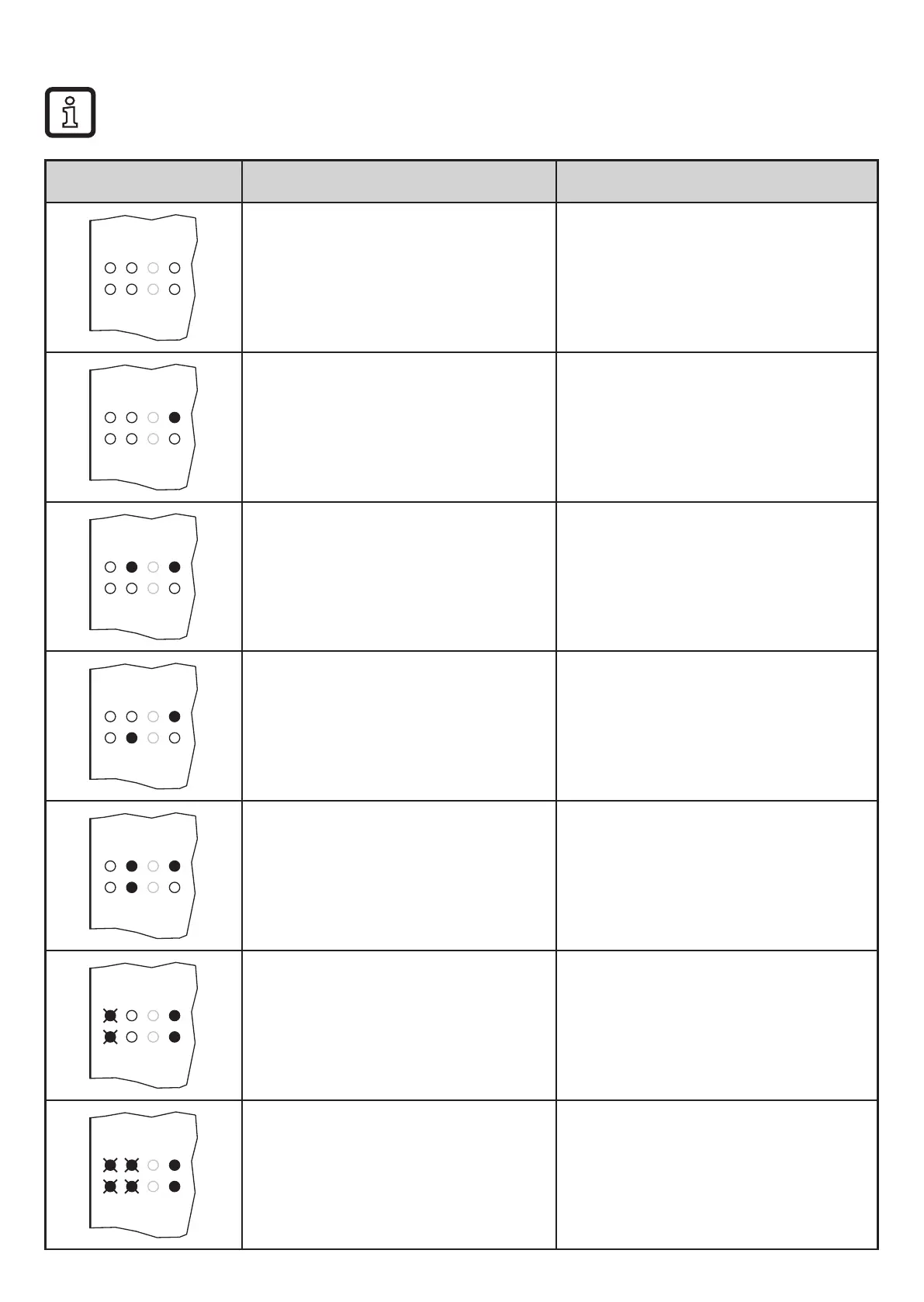 LED display Cause of the fault Troubleshooting