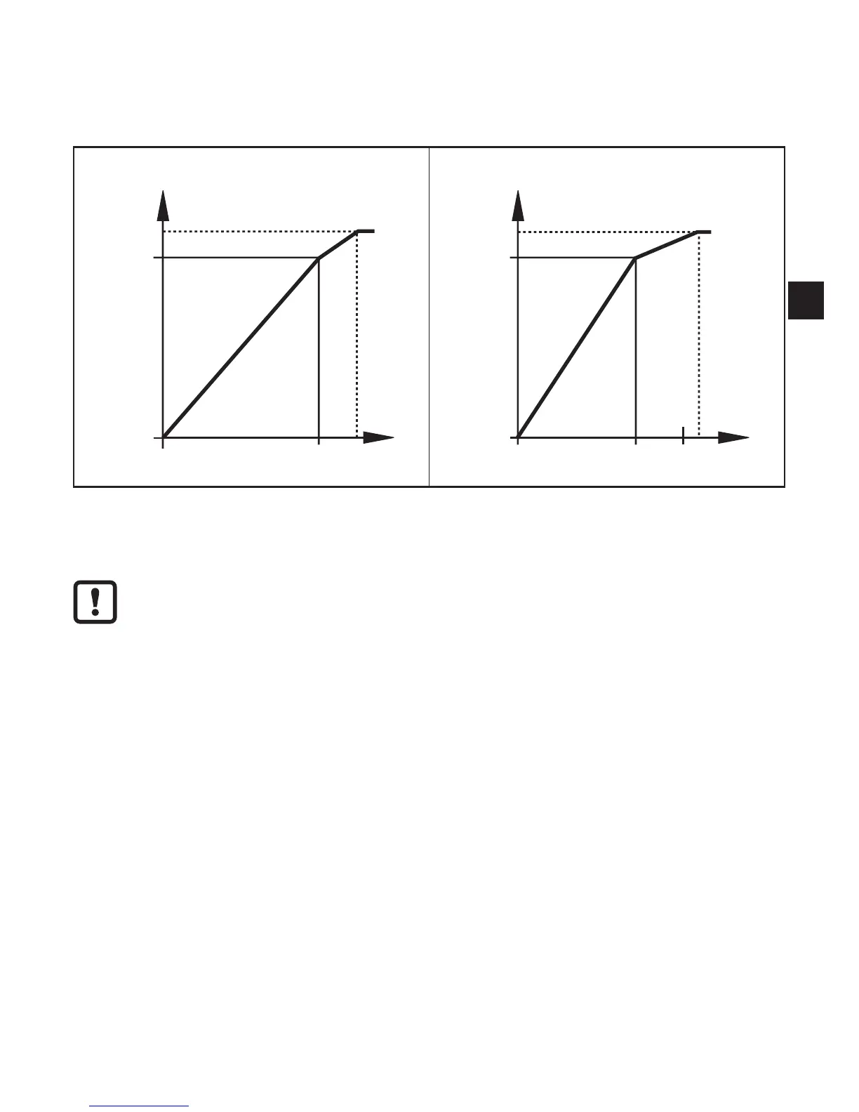 For an output signal > 10 V the flow quantity is above the final value of the meas-