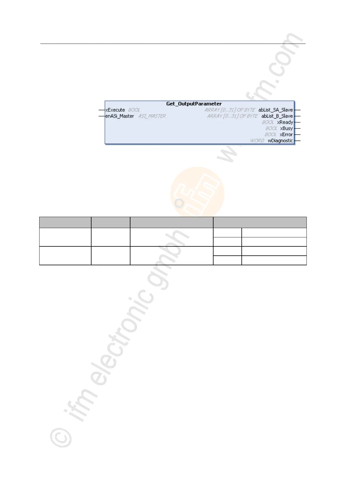 The FB reads the output parameters of the slaves on the selected AS-i master and provides the