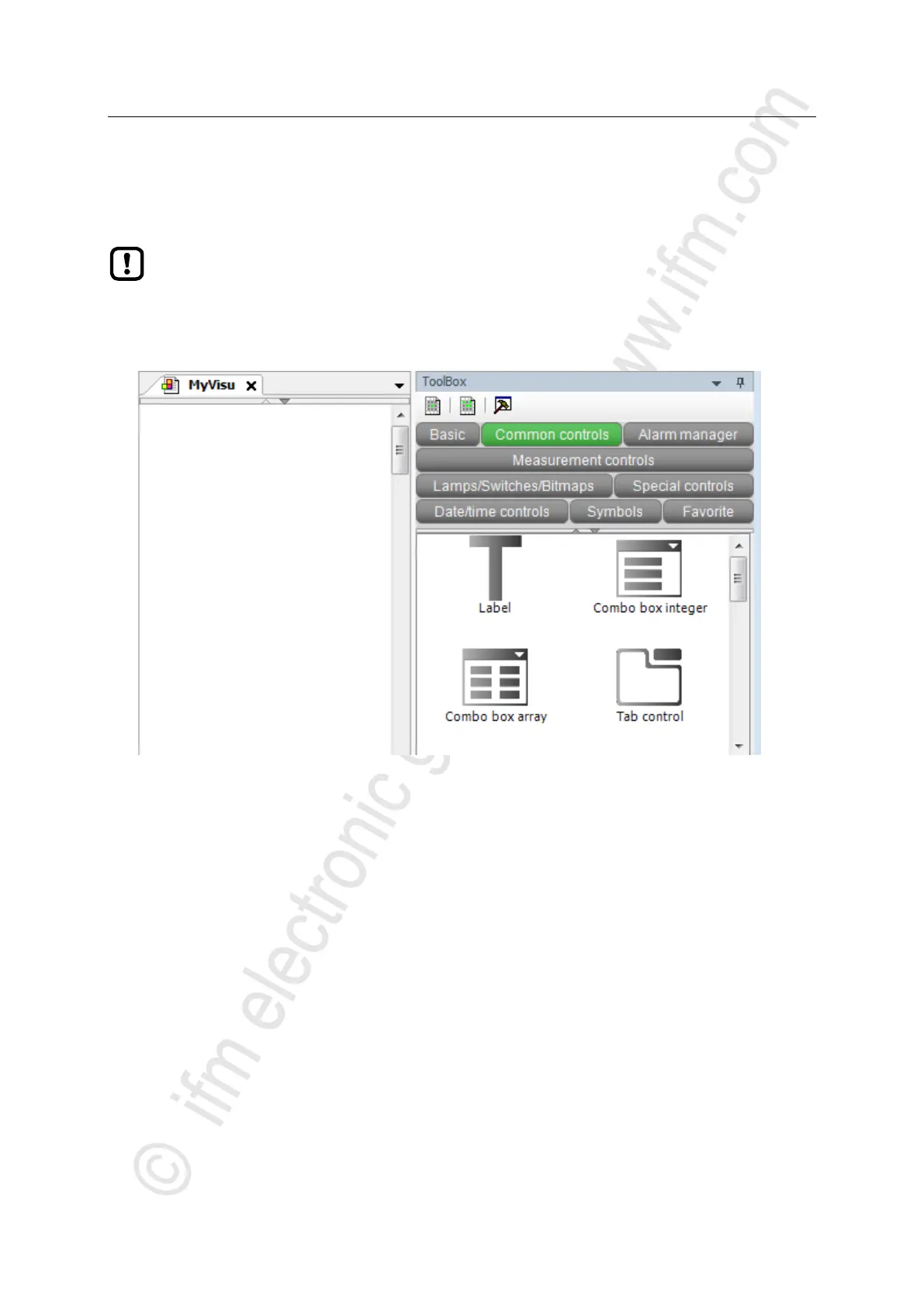 > The visualisation editor with a tool box appears: