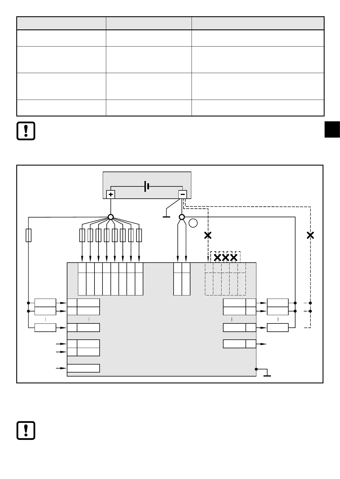 Connection of the supply and signal cables (X = not permitted), example CR721S