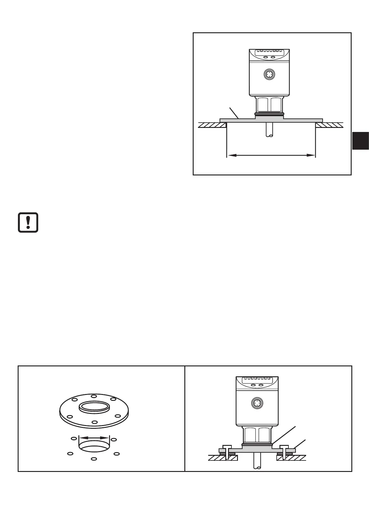 Minimum distance between rod and tank wall = 80 mm, higher for rod lengths > 70