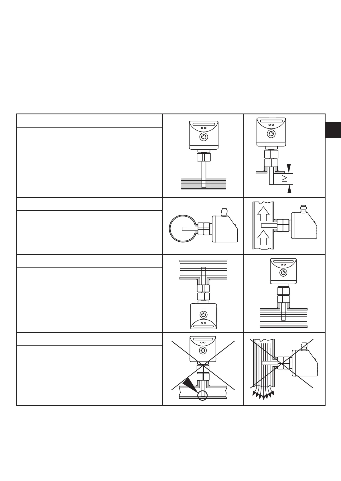 • Insertion depth of the sensor: minimum