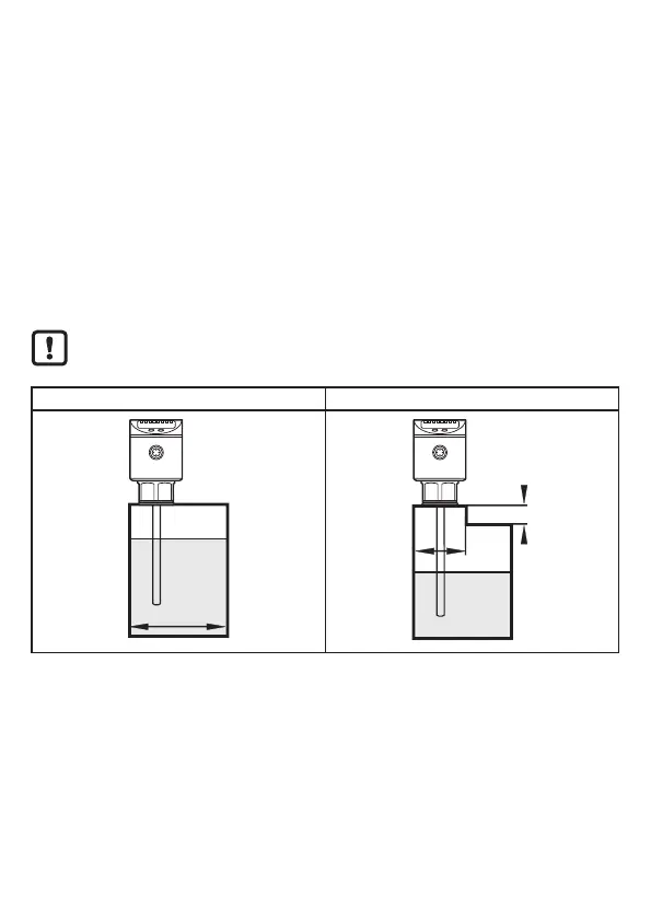 the fill pipe and the rod = 50 mm; higher for probe lengths > 70 cm and in case