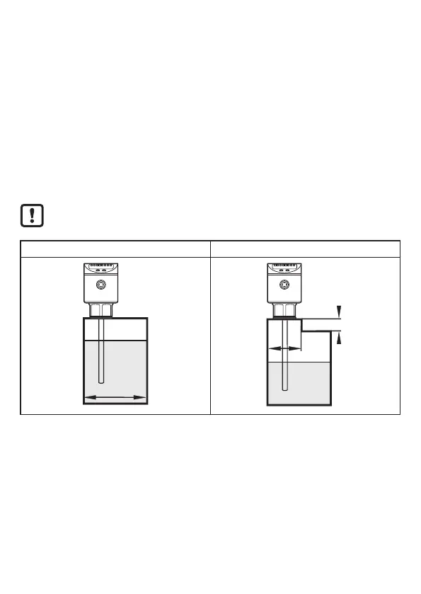 the fill pipe and the rod = 50 mm; higher for probe lengths > 70 cm and in case