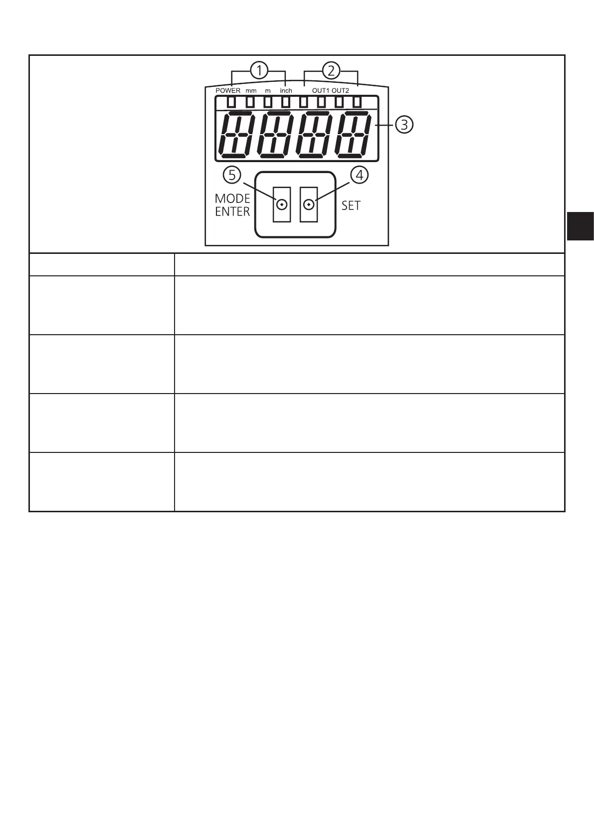 1: 4 x LED green Lighting LED = power and set display unit (mm, m, inch)