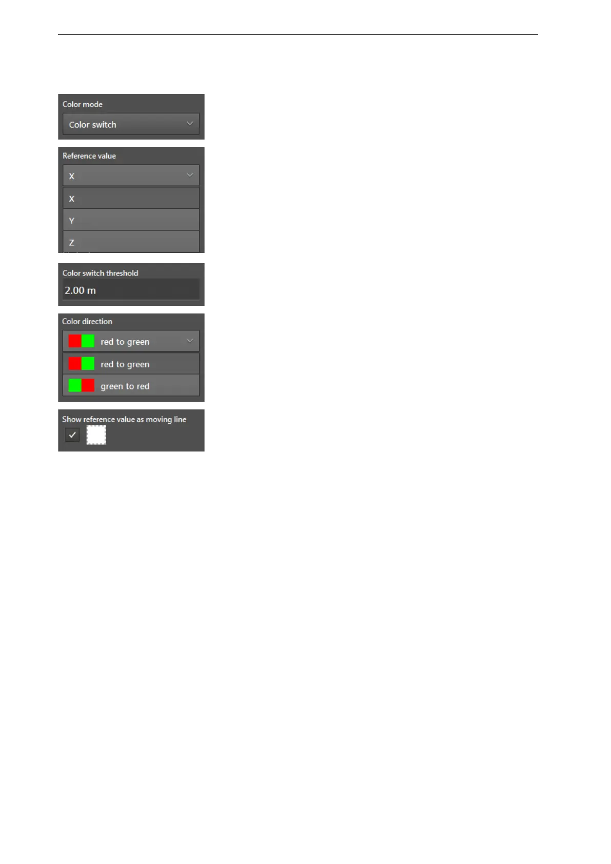 ● By clicking on the colour field, the colour of the "moving reference