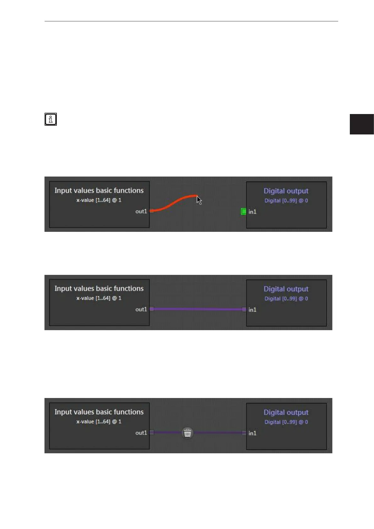 ► Keeping the mouse button pressed, drag the mouse pointer out of the output pin.