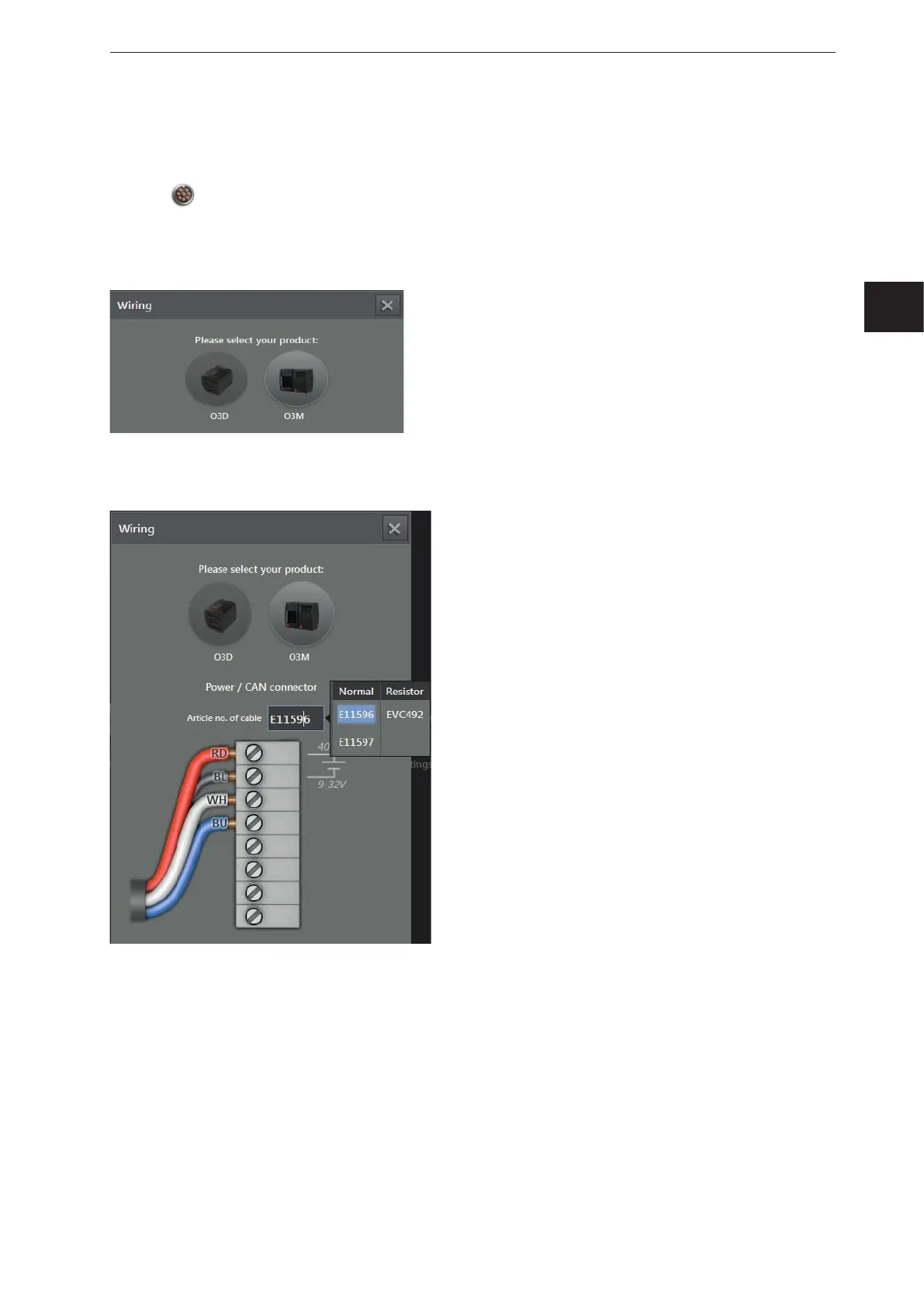 ► Click on the selection field [Article number] and select a connection cable from the selection list.