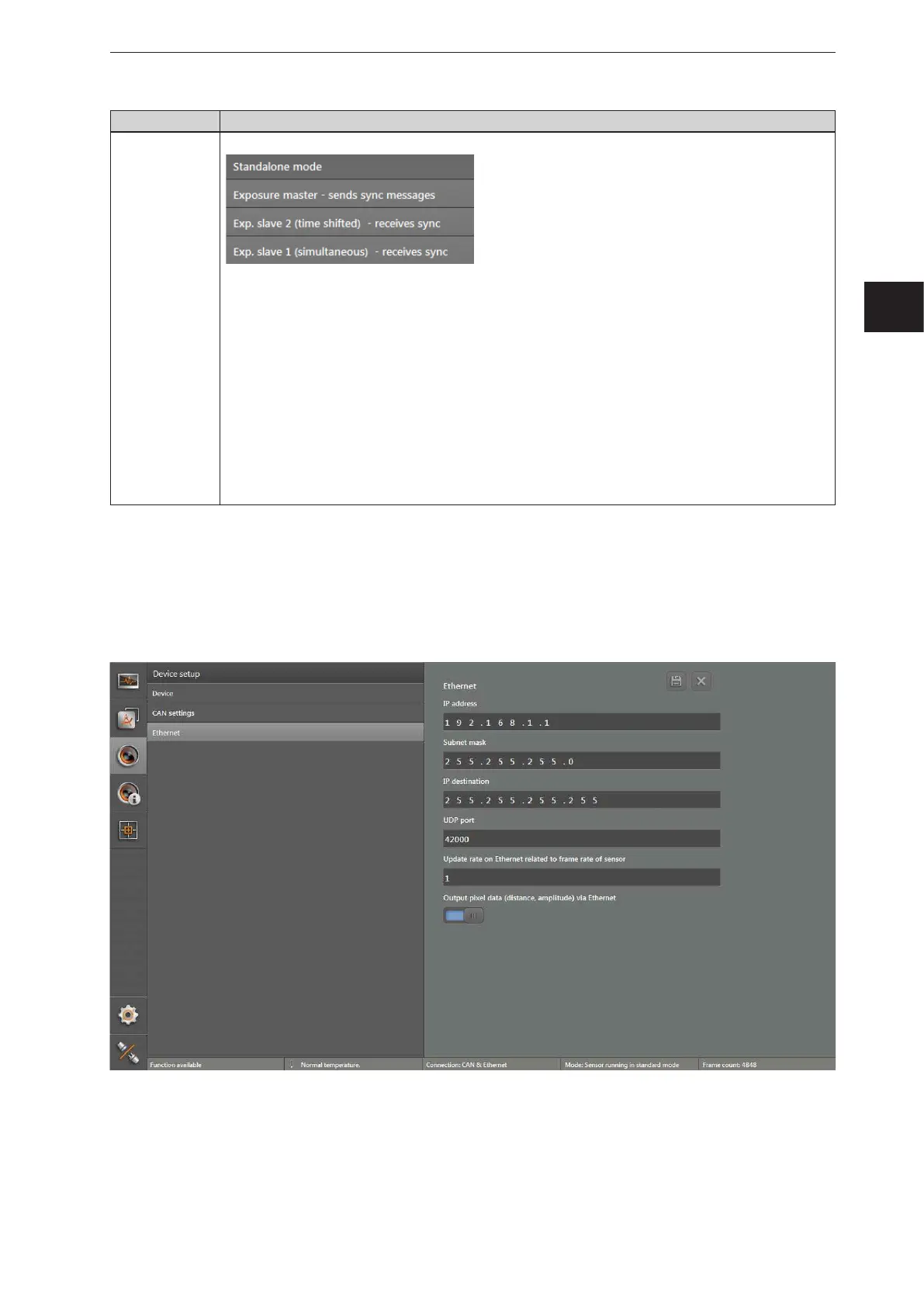 Further devices are set as "Exposure slave 2 (time shifted)" or "Exposure slave 1 (simultaneous)" The devices