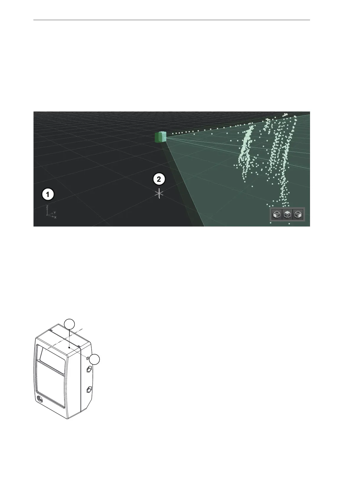 by a cross (2). The rectangular pattern on the X/Y level represents the ground level (grid 1 m). The Z axis