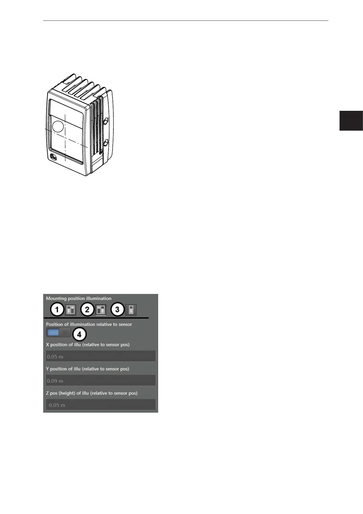 The following describes how the position of the illumination unit is indicated in the ifm Vision Assistant.