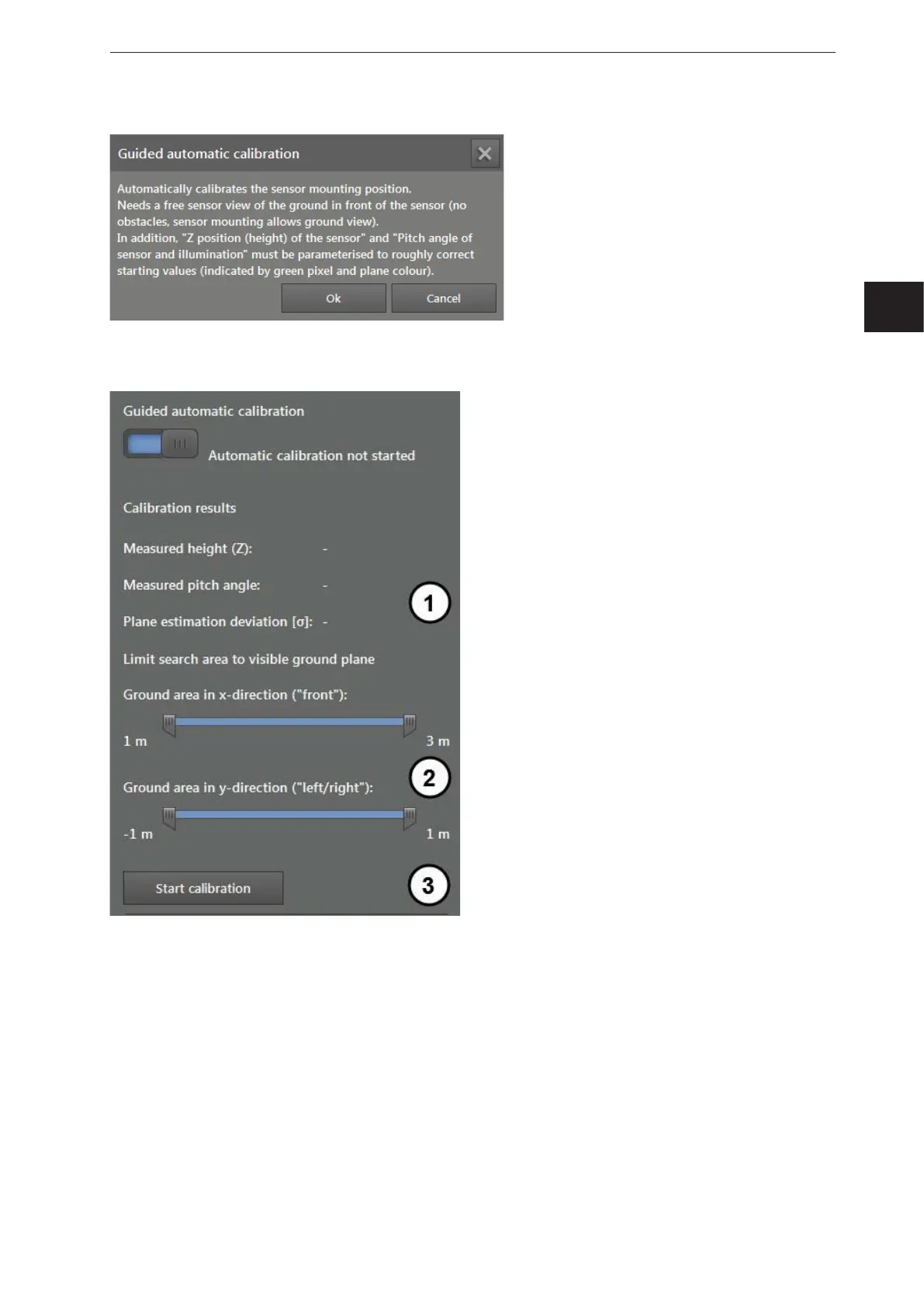 The button "Start calibration" (3) starts the automatic calibration.