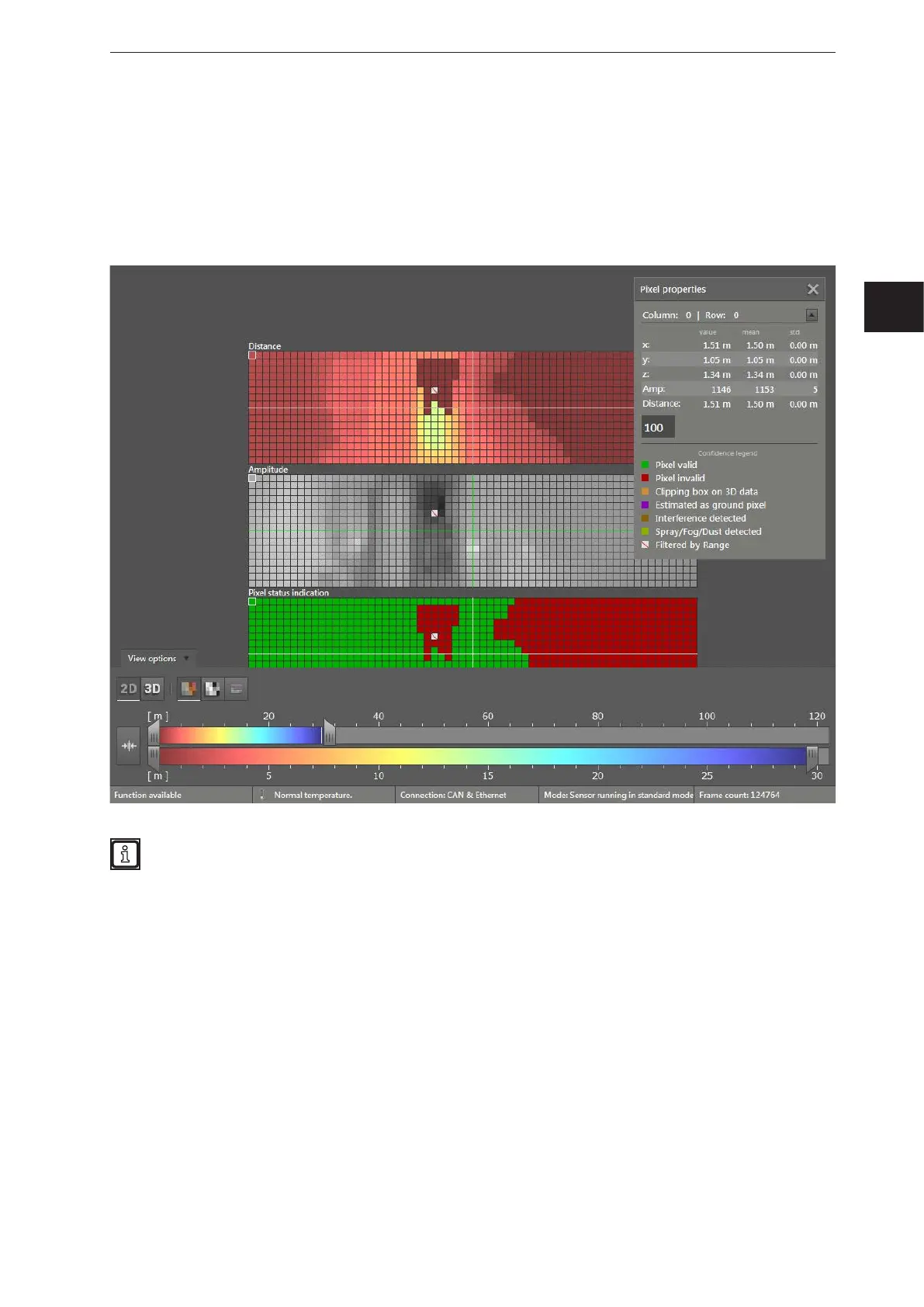 ● Confidence: The pixels are displayed in accordance with the legend of the pixel properties.