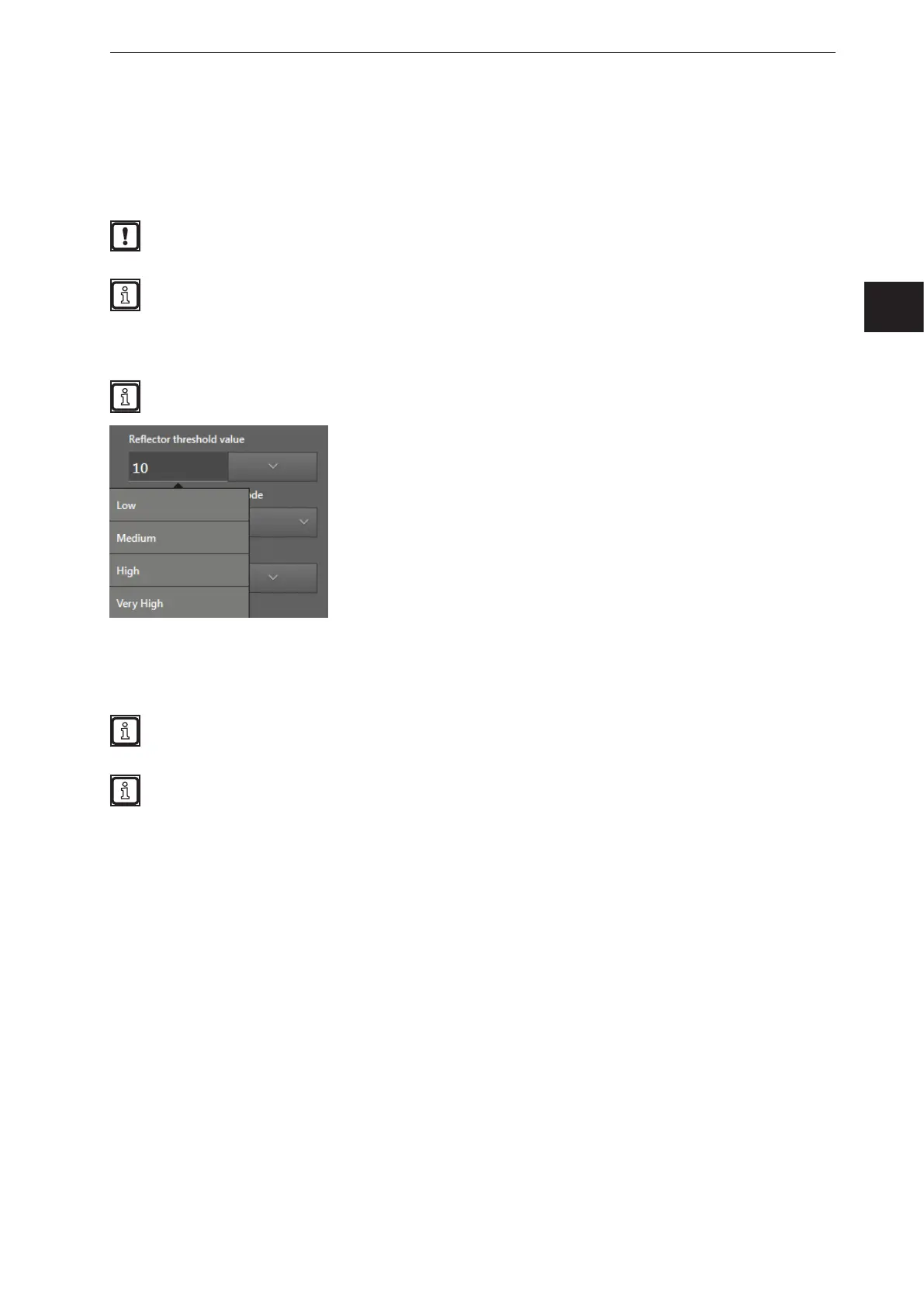 threshold level, the more pixels are recognised and filtered as a reflector. With a low threshold level, the
