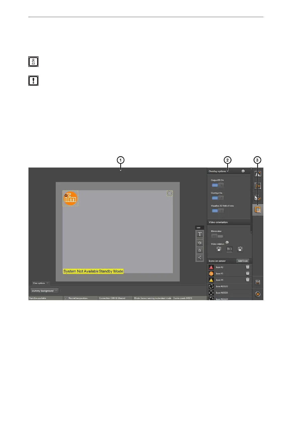 The 2D camera of the O3M2xx displays a 2D image of the application. With the 2D overlay, the output