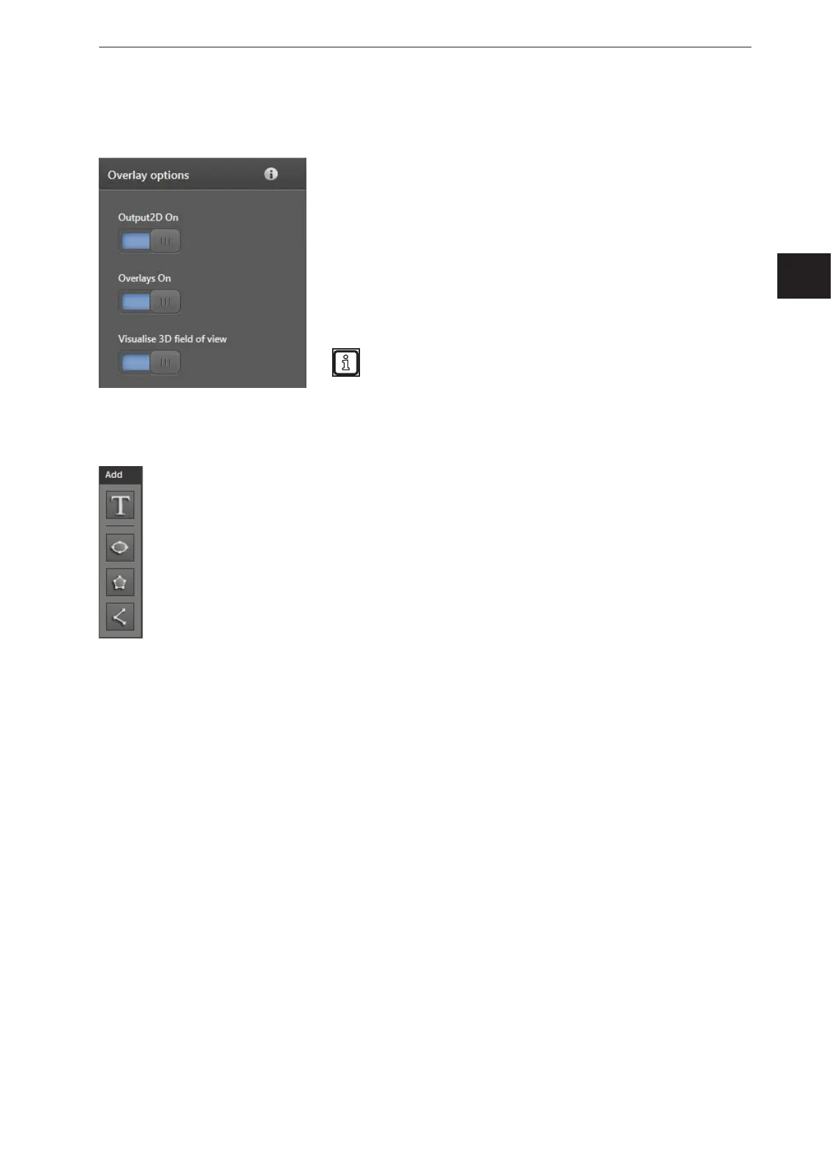 The [Add text] button adds a configurable text to the 2D overlay