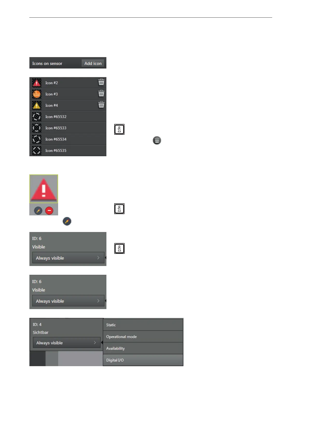 In the list "visible", the visibility of the graphic can be set.