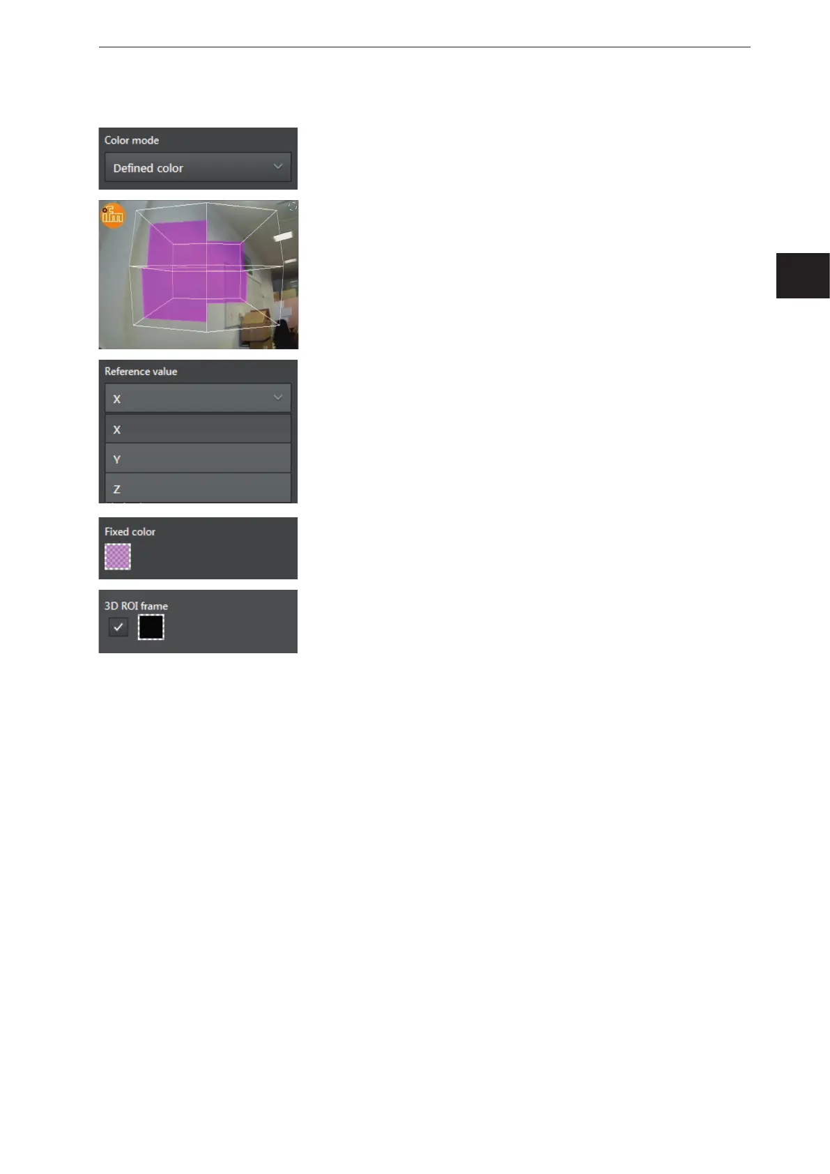 ● By clicking on the colour field, the colour of the "3D ROI frame" can