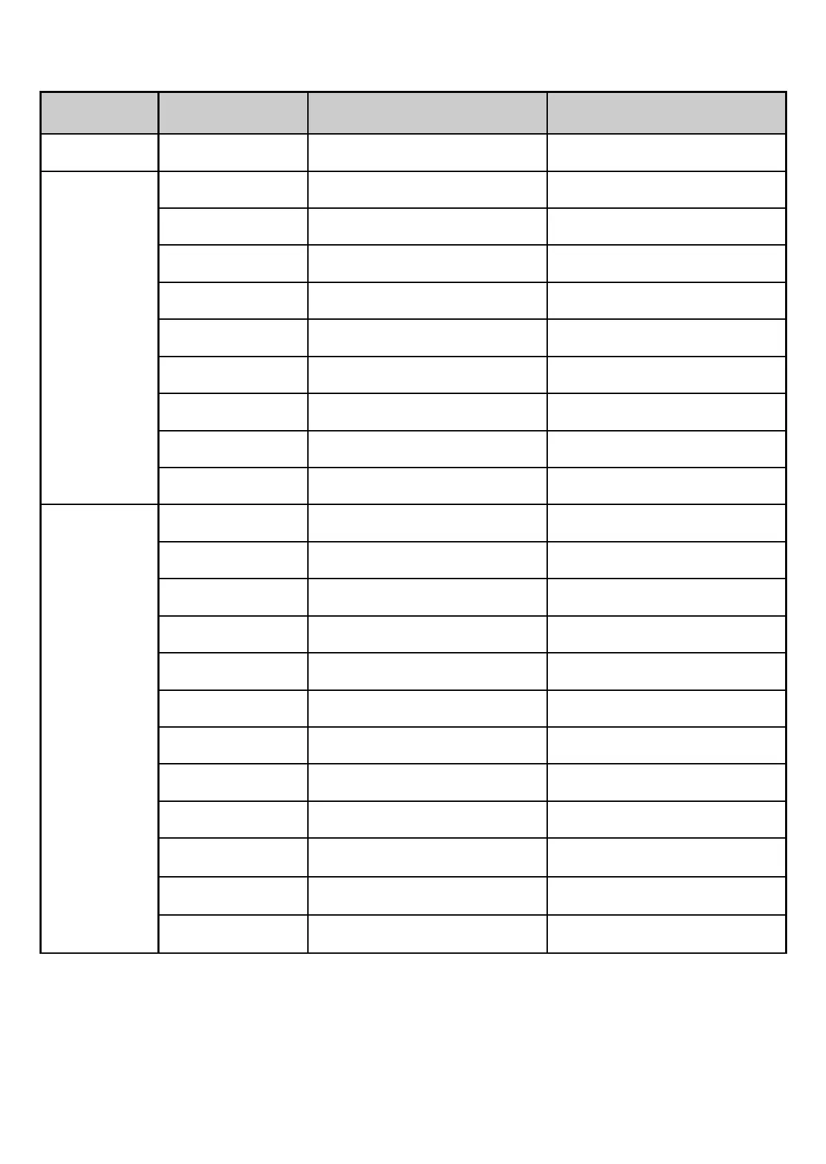 Menu Parameter Factory setting User setting